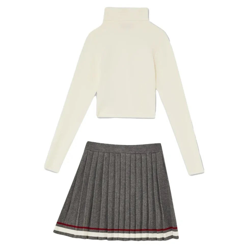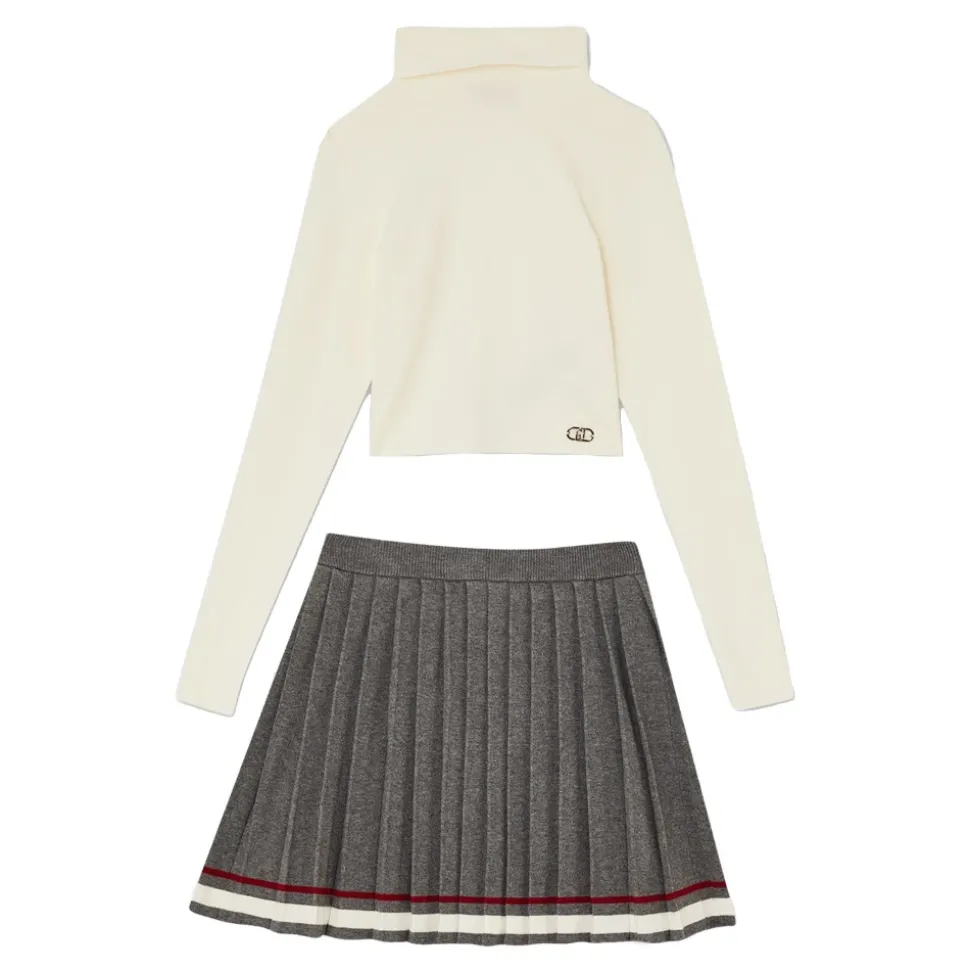 Liu Jo Completo Sportivo is een gecoördineerde set die een top met lange mouwen in ribstof combineert met een geplooide rok voor een verzorgde, alledaagse look. De set valt op door de ribdetails en een gouden logo-plaatje op de top. Belangrijkste kenmerken: Grijs | Grigio | Viscose | Ronde hals | Lange mouwen | Geribbelde boorden aan zoom en manchetten | Gouden logo-plaatje | Gecoördineerde geplooide rok | Contrastrand aan de zoom van de rok | Samenstelling & verzorging: 72% viscose, 28% polyester | Volg de wasvoorschriften op het interne label van het kledingstuk.