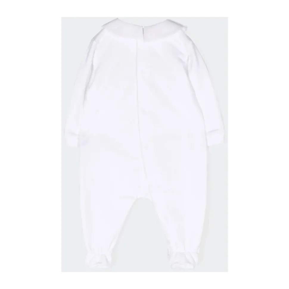 De Moschino Cotton Romper is een lichtgewicht katoenen romper, ontworpen voor het gemakkelijk verschonen van luiers. Het heeft een Teddy Moschino print en drukknoopsluitingen voor snelle toegang. Belangrijkste kenmerken: Wit | Bianco | Katoen | Lichtgewicht | Ademend | Drukknoopsluiting voor het gemakkelijk verschonen van luiers | Lange mouwen | Ronde hals | Teddy Moschino print | Samenstelling & onderhoud: 100% katoen | Machinewas op 30°C. Niet strijken. Niet wassen met lichte kleuren. Geen bleekmiddel gebruiken.