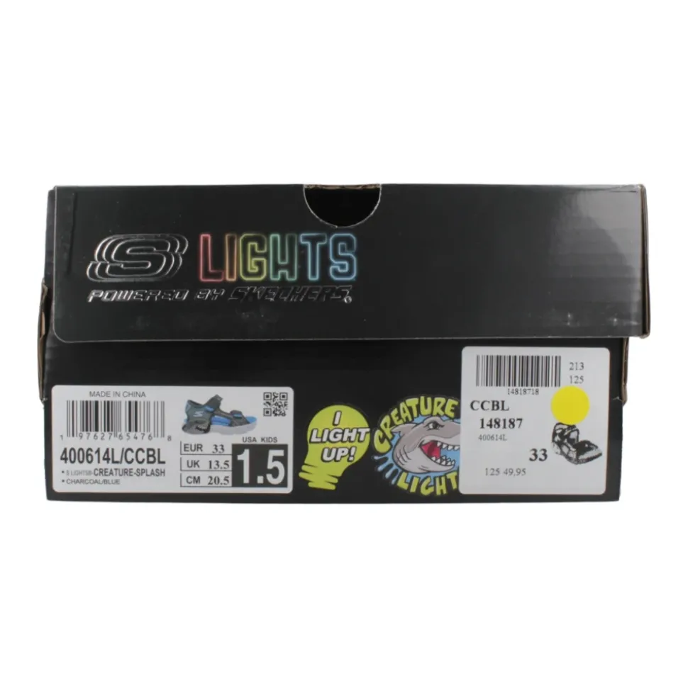 Skechers Creature-Splash is een sandaal met lichtjes, ontworpen voor actieve, dagelijkse gebruik. Hij combineert een gedempte voetbed met een bewegingsgeactiveerde lichtfunctie voor speelse, zichtbare stappen. Belangrijkste kenmerken: Multicolor | Grijs | Synthetisch | Bewegingsgeactiveerde lichtgevende tussenzool | Gedempte binnenzool voor comfort | Flexibele buitenzool met grip | Verstelbare klittenbandsluitingen | Gewatteerd voetbed | Open-teen silhouet | Speels creatief motief | Lichtgevend tussenzool detail | Samenstelling & onderhoud: Bovenwerk: Synthetisch | Voering: Textiel | Binnenzool: Synthetisch | Buitenzool: Synthetisch