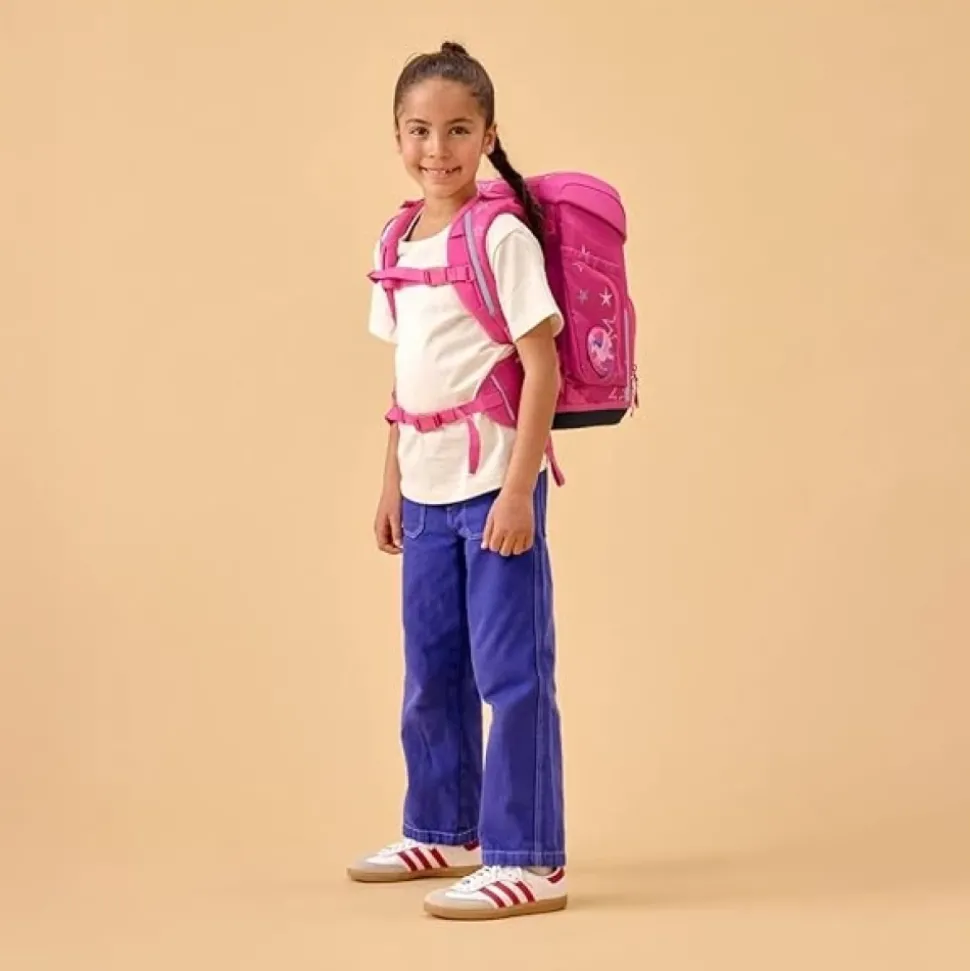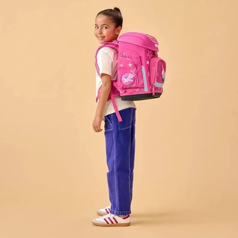 De Ergobag Cubo Set Rugzak Pennenzak Etui combineert een ergonomische rugzak met bijpassende accessoires voor georganiseerd dagelijks gebruik. Het in hoogte verstelbare draagsysteem en de gevoerde heupvinnen van de set zorgen voor ondersteuning op maat en verbeterd draagcomfort. Belangrijkste kenmerken: Roze | Multicolor | Waterbestendige basis | Reflecterende elementen voor 360° zichtbaarheid | Stabiele basis voor rechtopstaand | In hoogte verstelbaar draagsysteem | Gevoerde heupvinnen voor gewichtsverdeling | Hoofdvak met flexibele verdeler en geïntegreerd notebookvak | Gemakkelijk te openen deksel | Zij- en voorvakken | Inclusief bijpassende gymtas, harde etui en pennenzak | Starlightbear motief | Aanpasbare cletties en ritssluitingdetails | Stabiel silhouet met gevoerde elementen | Afmetingen & pasvorm: 28 x 40 x 25 cm (breedte x hoogte x diepte) | In hoogte verstelbaar draagsysteem voor een pasvorm op maat. | Ergonomische ondersteuning met gevoerde heupvinnen die het gewicht naar de heupen verdelen. | Samenstelling & onderhoud: Polyethyleentereftalaat (PET)