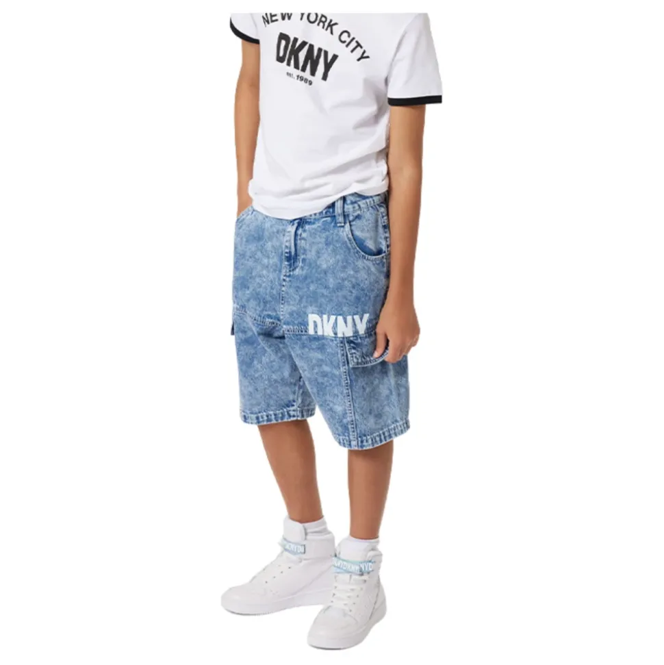 Upgrade de stijl van je kleine man met deze DKNY Kids denim Bermuda shorts. Voorzien van twee zijzakken, een verstelbare tailleband, twee neppe cargozakken, een logoprint en een regular fit. Gemaakt van 100% katoen voor comfort en duurzaamheid.
