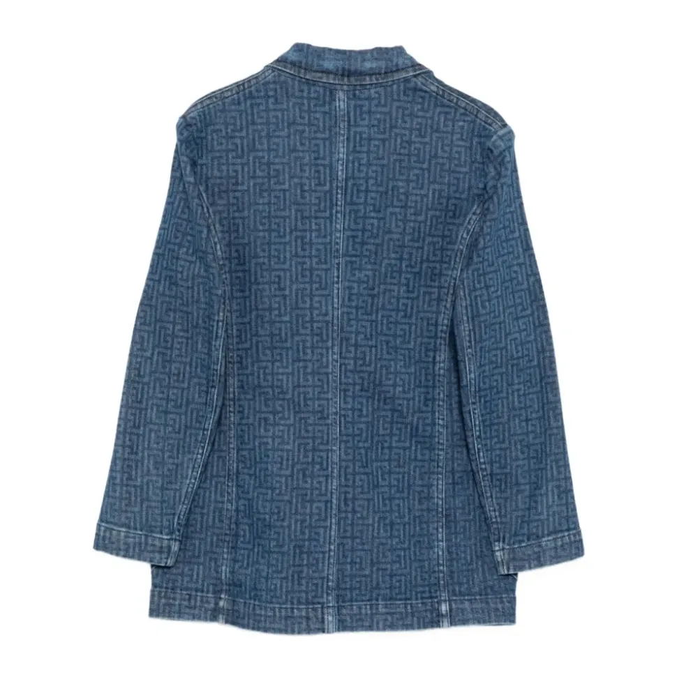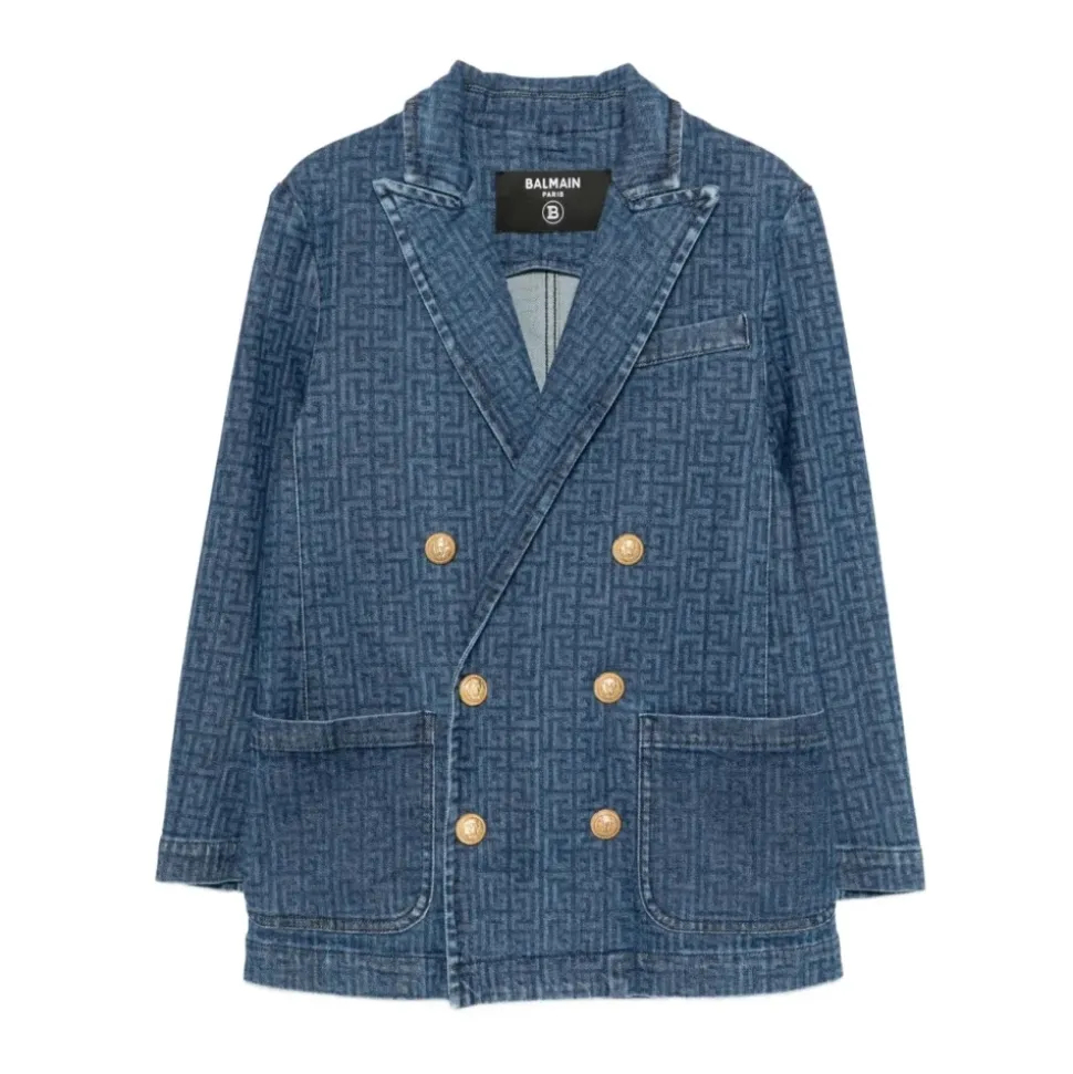 De Balmain Denim Double-Breasted Blazer combineert een gestructureerde snit met denim voor een gepolijste, casual look. De double-breasted voorkant en het logo detail maken het een verfijnde keuze voor slimme dag- of avondoutfits. Belangrijkste kenmerken: Blauw | Katoen | Double-breasted knoopsluiting | Borstzak met paspel | Twee opgestikte zakken aan de voorkant | Double-breasted voorkant | Paspel borstzak | Twee opgestikte zakken aan de voorkant | Logo detail | Afmetingen & pasvorm: Regular fit | Samenstelling & verzorging: 98% katoen | 2% spandex/elastaan
