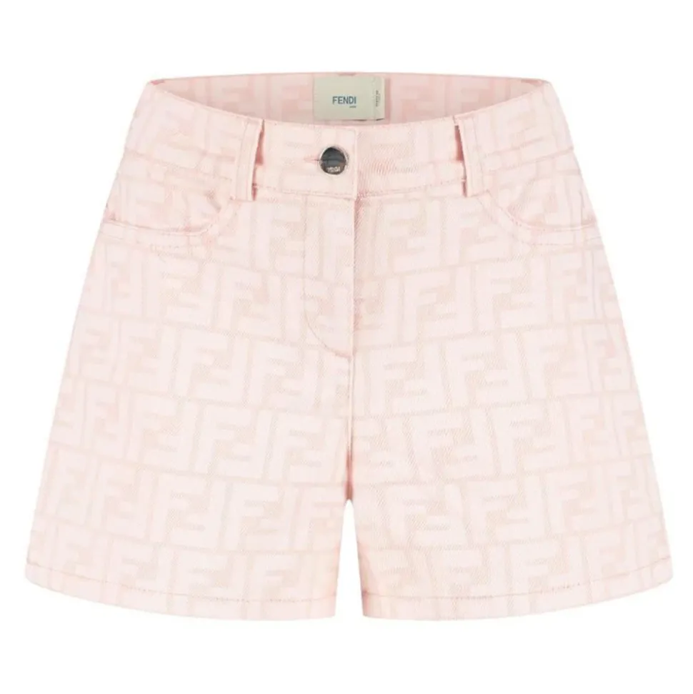 Upgrade de garderobe van je kleine meid met deze Fendi Junior katoenen denim shorts met een all-over, toon-op-toon FF-logo print. Gemaakt in Italië van 100% katoen.