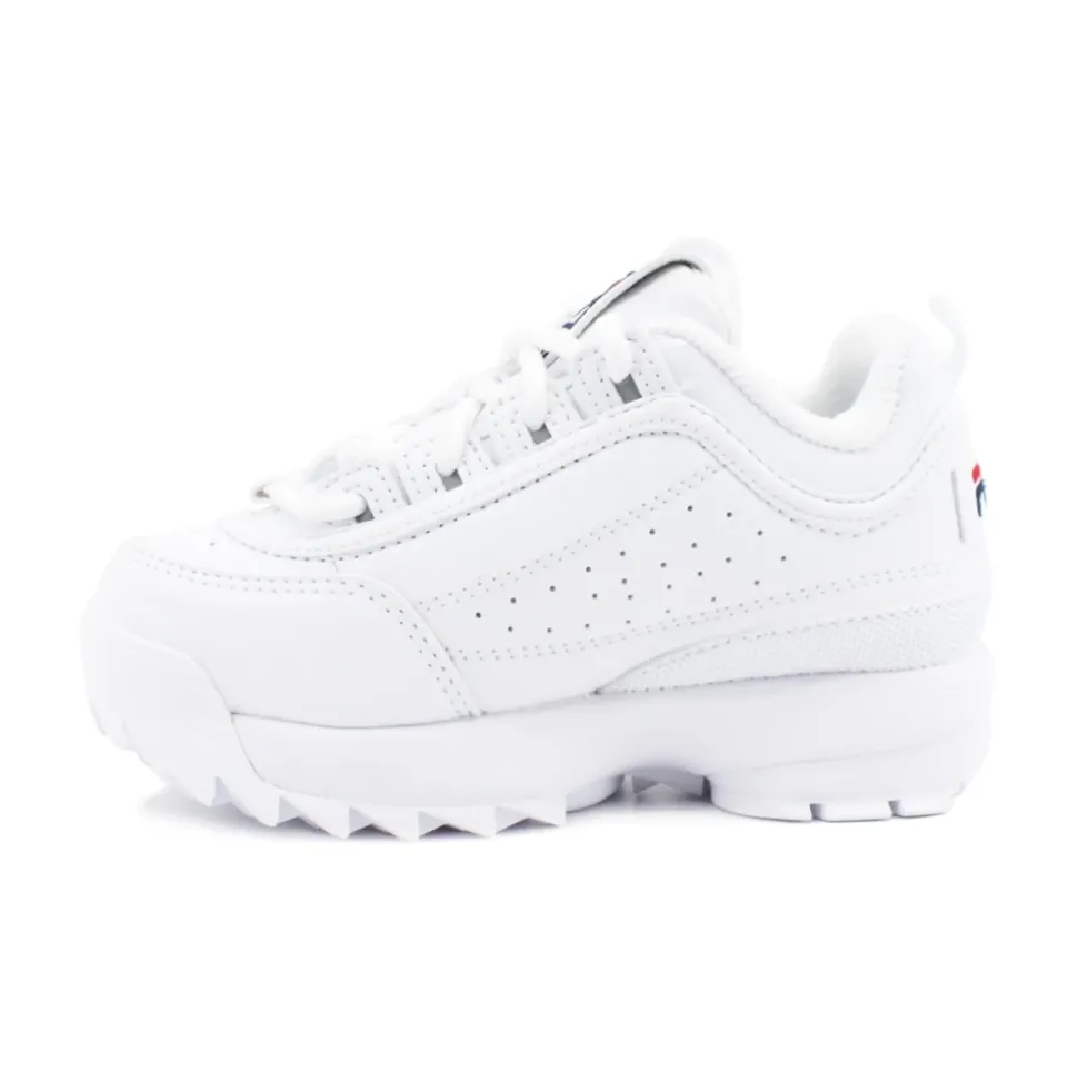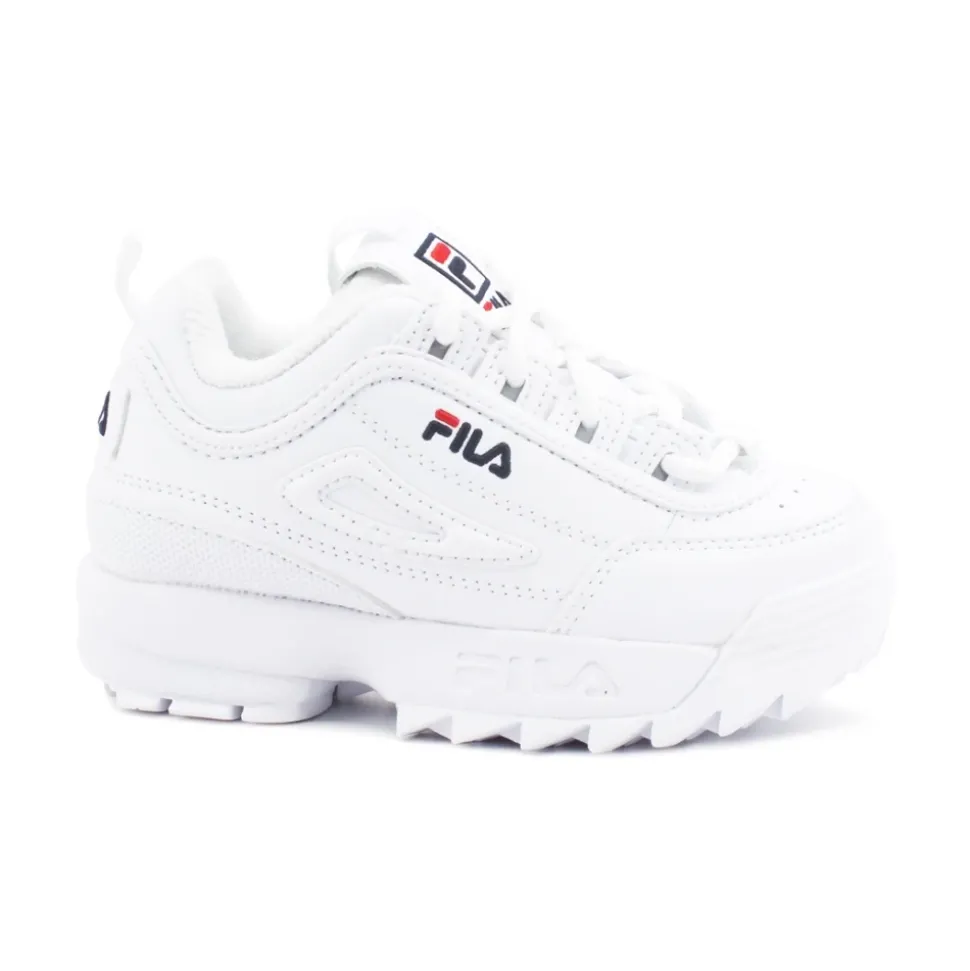 De Fila Disruptor F sneakers combineren een leren bovenwerk met een rubberen zool voor dagelijks gebruik. Het ontwerp is gericht op een eenvoudige, constructie met een ronde neus en vetersluiting. Belangrijkste kenmerken: White | Bianco | Leer | Vetersluiting | Ronde neus | Afmetingen & pasvorm: Zool dikte: 2,5 cm | Totale schoen hoogte: 9 cm | Gewicht (kleinste maat): 115 g | Samenstelling & verzorging: Bovenwerk: Leer | Voering: Textiel | Zool: Rubber