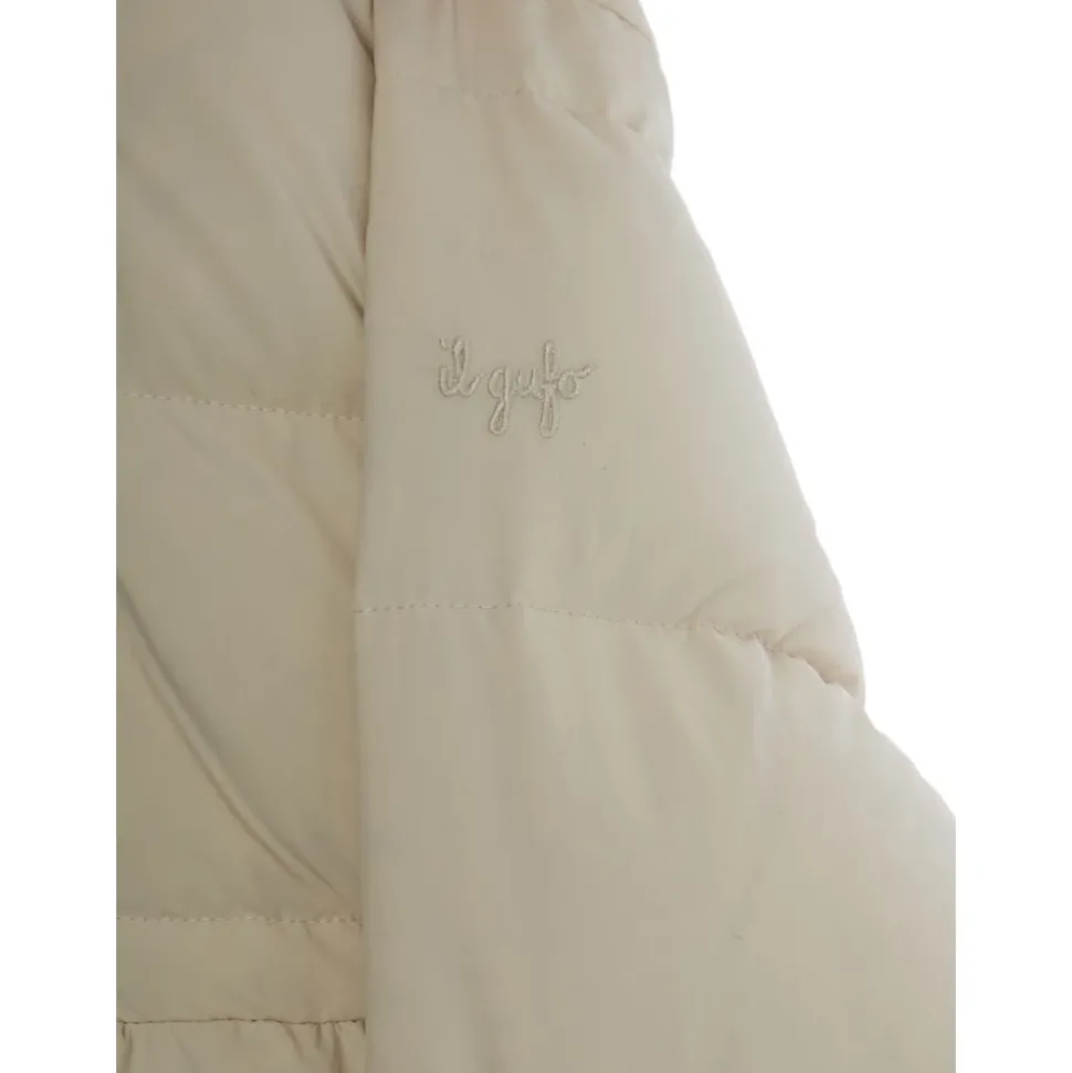 De Il Gufo donzen jack combineert warme donsisolatie met een vaste capuchon voor betrouwbare bescherming tegen koud weer. Het gewatteerde silhouet en het logo-borduurwerk op de mouw maken het een praktische maar stijlvolle buitenlaag. Belangrijkste kenmerken: Beige | Polyamide/Nylon | Donsisolatie | Gewatteerd ontwerp | Vaste capuchon | Ritssluiting aan de voorkant | Zijzakken | Elastische zomen | Logo-letters borduurwerk op de mouw | Gewatteerde/gestikte buitenkant | Raglanmouwen | Samenstelling & onderhoud: Buitenstof: 100% Polyamide/Nylon | Binnenstof: 100% Polyester | Voering: 100% Polyamide/Nylon | Vulling: 80% Dons, 20% Veer | Machinewas 30°C. Niet bleken. Strijk op lage temperatuur. Voorzichtig chemisch reinigen aanbevolen. Trommeldrogen max. 60°C. Plat drogen.