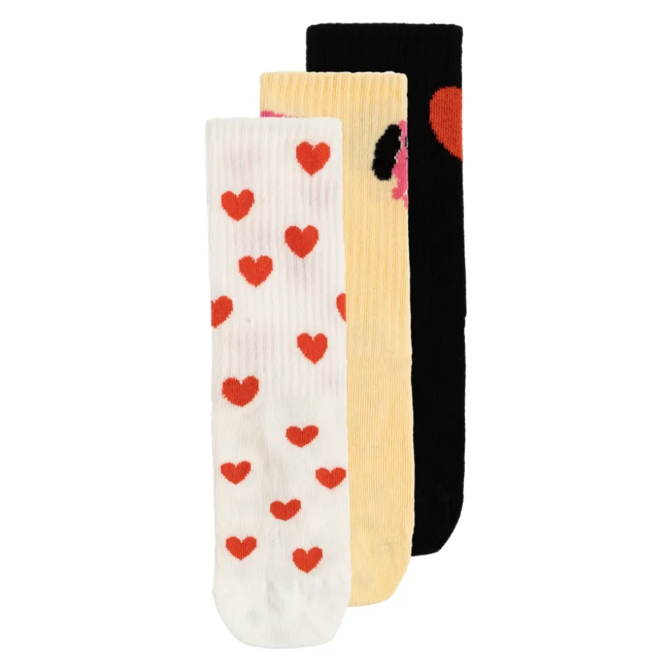 Mini Rodini Drie paar sokken biedt drie paar enkelsokken met patronen die speelse motieven combineren met praktische antislipzolen voor dagelijks gebruik. Belangrijkste kenmerken: Multicolor | Multicolour | Katoen | Zacht, flexibel breisel | constructie | Antislip rubberen grip op de zolen | Verstevigde neuzen en hielen | Stretchy breisel voor bewegingsvrijheid | Enkellange sokken | Hart- en hondenmotieven | Contrasterende M. RODINI inscriptie | Samenstelling & verzorging: 80% katoen, 18% polyamide, 2% elastaan | Machinewas koud, droogtrommel laag.