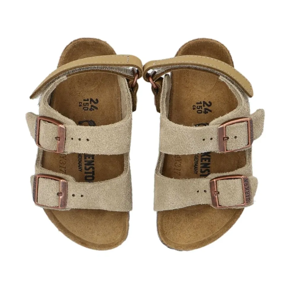 Upgrade de zomerse stijl van je kleine meid met deze Birkenstock sandalen in taupe. Voorzien van twee gespsluitingen, een touch-strap sluiting aan de achterkant, gegraveerd logo en een comfortabel voorgevormd voetbed.
