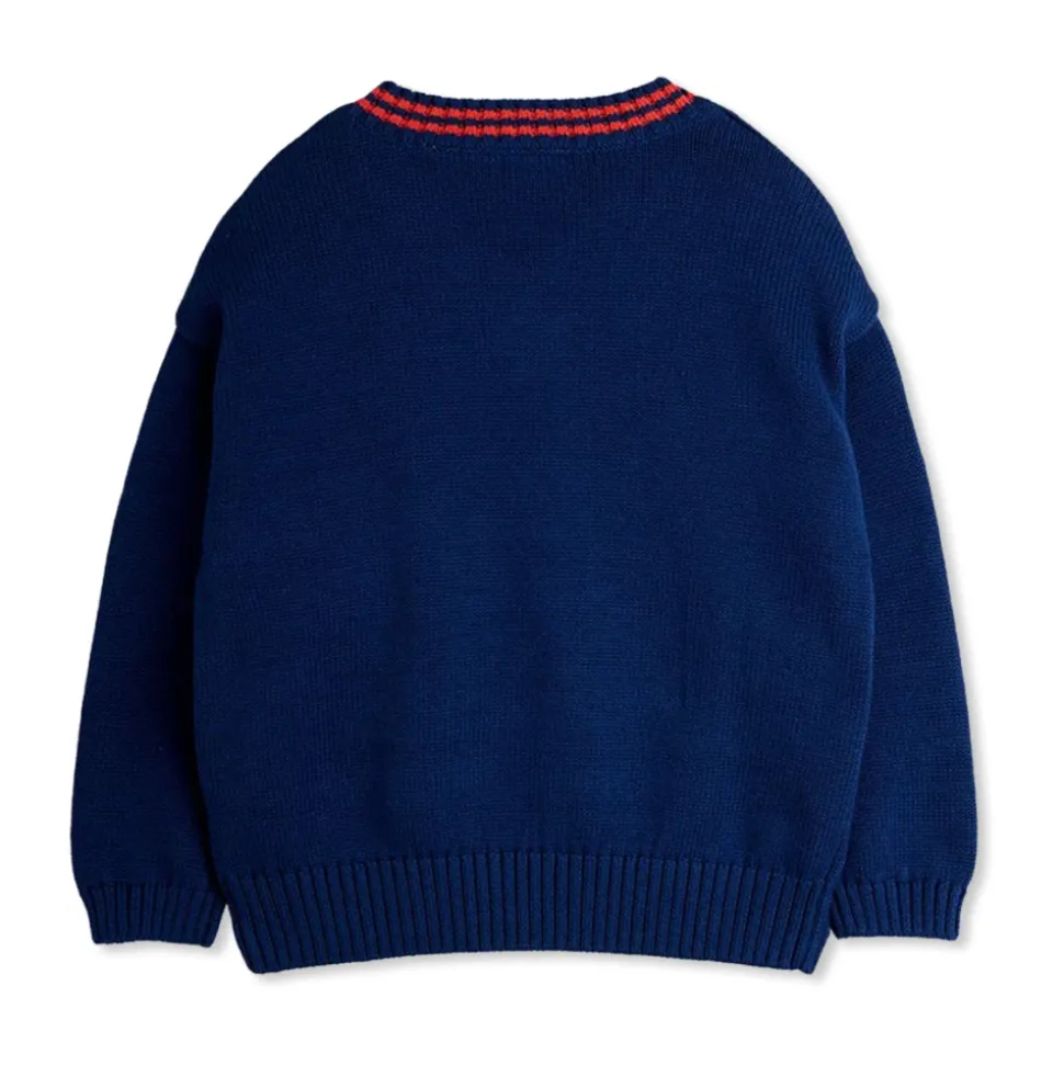 De Mini Rodini E.T. Intarsia V-Neck Sweater combineert een opvallend popcultuur intarsia motief met een klassiek V-hals silhouet voor dagelijkse gelaagde kleding. Belangrijkste kenmerken: Blauw | Marineblauw | Katoen | Comfortabel gevoel | Ademende stof | breisel | Geribde manchetten, zoom en halslijn | Geen zichtbare logo’s | V-hals met rode en marineblauwe strepen | Opvallend intarsia motief geïnspireerd op popcultuur | Gebreide constructie | Geribde manchetten, zoom en halslijn | Afmetingen & pasvorm: Losse normale pasvorm | Samenstelling & verzorging: 100% katoen