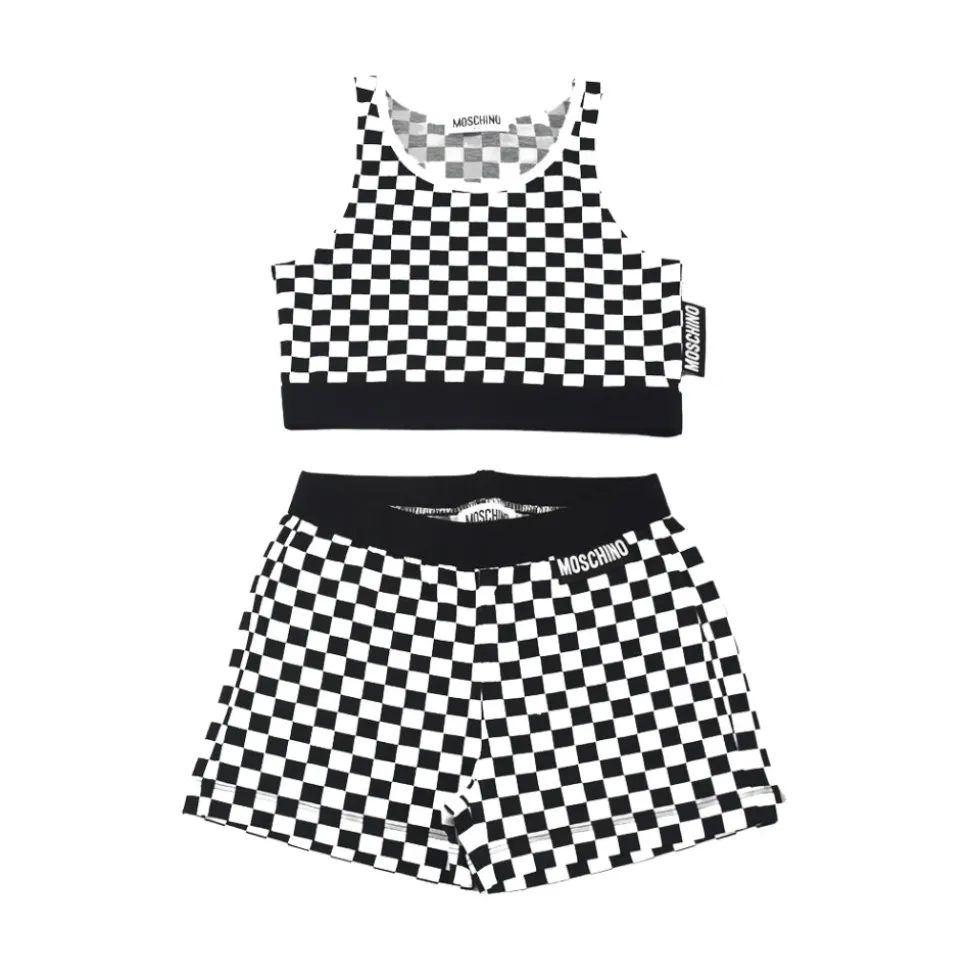 Moschino Elastische Set met All-Over Ruitjesprint combineert een bedrukte jersey top met bijpassende shorts voor een gecoördineerde look, geaccentueerd door een geweven label aan de voorkant op beide kledingstukken. Belangrijkste kenmerken: Multicolor | Bianco | Katoen | Stretchstof | Gecoördineerde top en shorts | Elastische constructie | All-over ruitjesprint | Jersey shorts | Geweven label aan de voorkant op beide kledingstukken | Samenstelling & onderhoud: 95% katoen | 5% elastaan | Volg de wasinstructies op het waslabel in het kledingstuk.