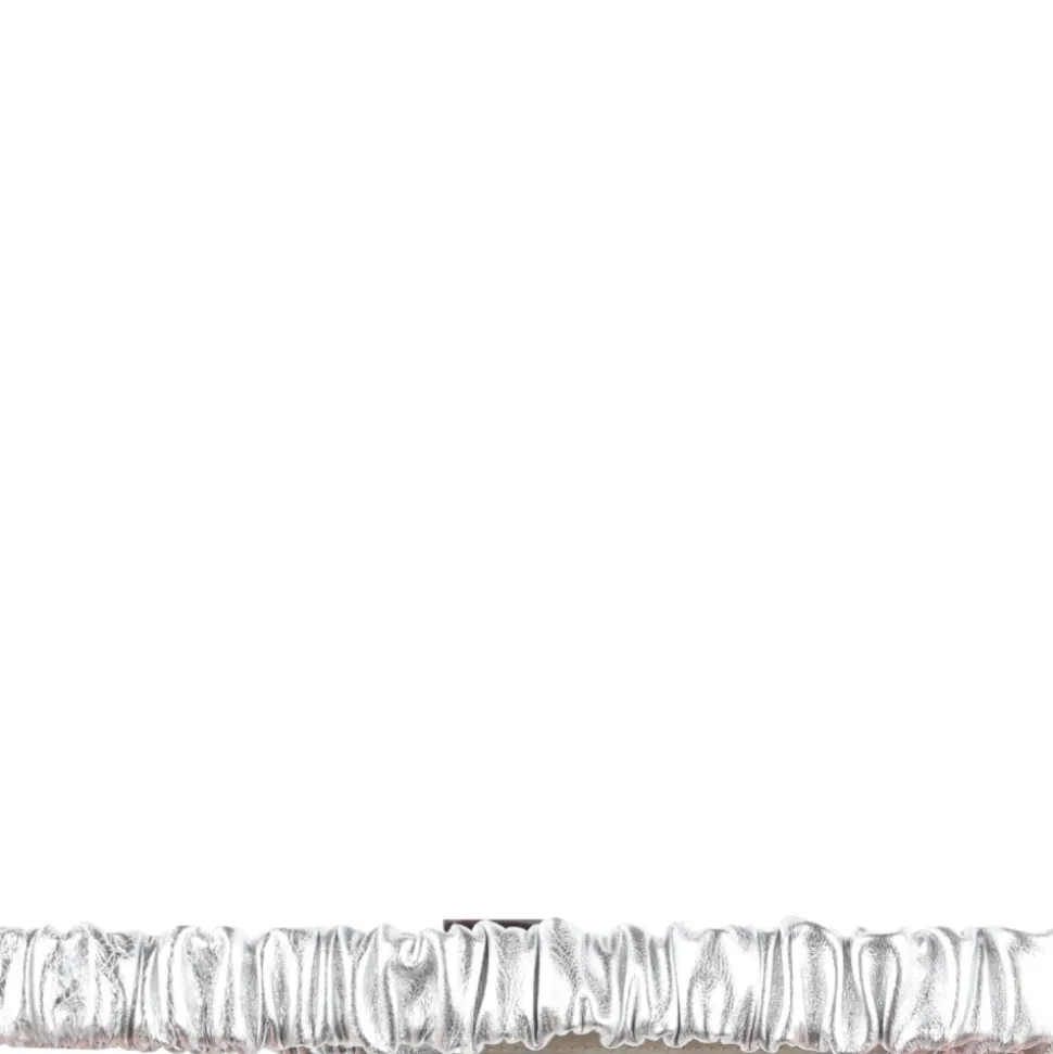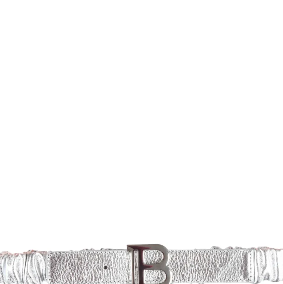 Elastische zilveren riem van Balmain, versierd met B en logo aan de voorkant. Gemaakt van 100% polyamide.