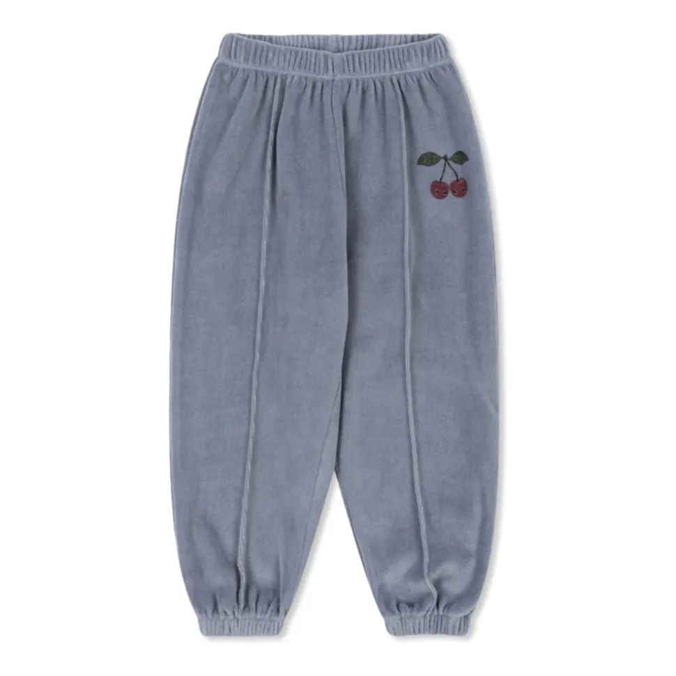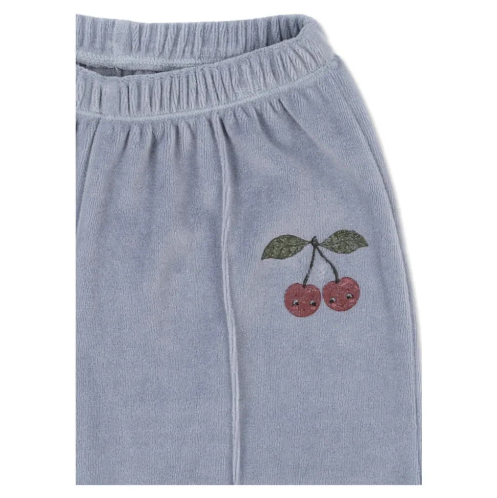 VELOUR BROEK door Konges Sløjd betovert met een unieke mix van traditionele vorm en verfijnde esthetiek. Gemaakt van fluweelachtig velours, vallen ze op met een subtiele, rokerige blauwe tint en een delicate, verfijnde glans. De rechte, licht toelopende pijpen zijn afgewerkt met zachte geribbelde boorden, wat zorgt voor een perfecte pasvorm en comfort tijdens dagelijkse activiteiten. Een opvallend accent van deze broek is de ingewikkelde borduurkunst – twee kersen met geborduurde ogen en glimlachen op het linkerbeen, wat charme toevoegt en het kinderlijke karakter benadrukt. De stof is zorgvuldig geselecteerd om te voldoen aan de hoogste normen van comfort, terwijl de verticale stiksels langs de benen een uitzonderlijke touch van stijl toevoegen aan het gehele ontwerp. WAAROM DIT PRODUCT KIEZEN? * Uitzonderlijk zacht en comfortabel velours, zacht voor de huid * Ongeëvenaarde esthetiek dankzij originele borduurkunst * Elastische geribbelde boorden zorgen voor een perfecte pasvorm * Zorgvuldig vakmanschap geaccentueerd door decoratief stikwerk * Een product van een bewust Deens merk dat waarde hecht aan materialen