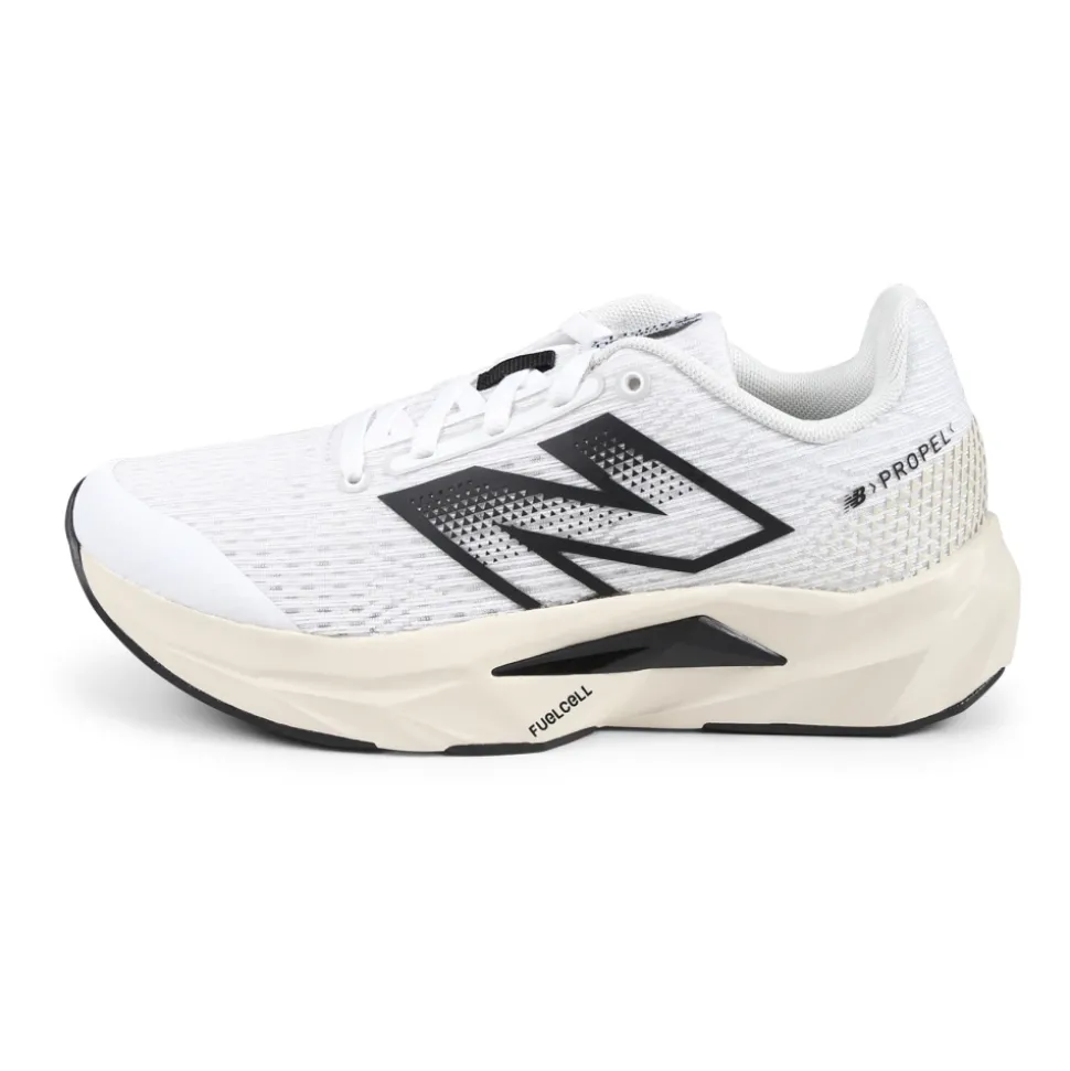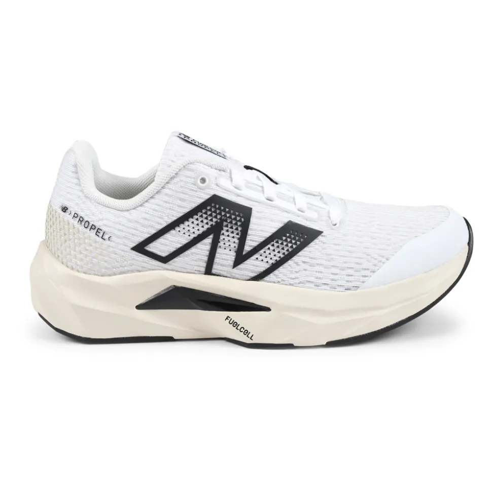 De New Balance FuelCell Propel v5 sneakers bieden een dynamische en responsieve ervaring voor actieve kinderen, met FuelCell-demping voor een voortstuwende sensatie. Belangrijkste kenmerken: Wit | Synthetisch | Voortstuwende demping | Veters | Ronde neus | Zwart logo op de zijkanten | Samenstelling en onderhoud: 100% synthetisch