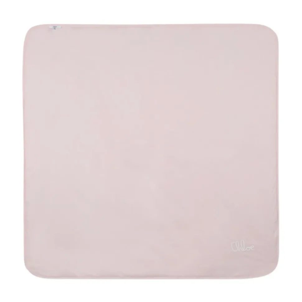 Chloé kinderset met geborduurd logo, drukknoopsluiting aan de achterkant en bijpassende deken inbegrepen. Gemaakt van 100% katoen in Tunesië.