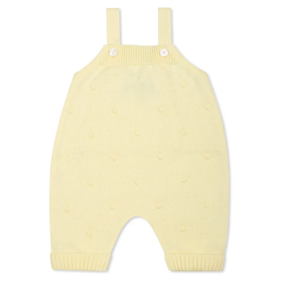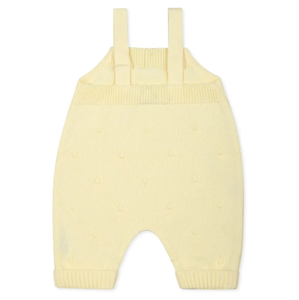 Kleed je kleintje in stijl met deze gele tuinbroek van Little Bear. Gemaakt in Italië van 100% katoen, deze tuinbroek heeft bretels, knopen aan de voorkant, geribbelde enkelboeien en all-over geborduurde stippen. Alleen handwas.