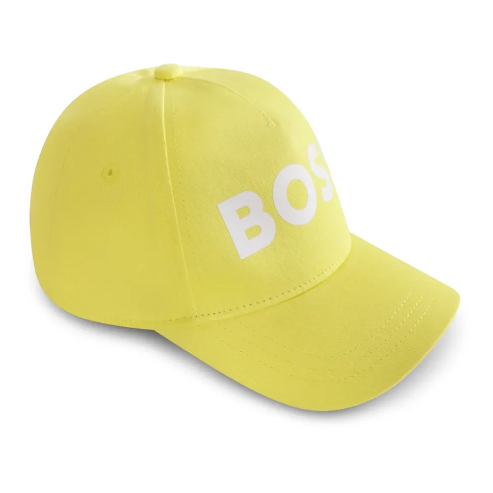 Voeg een vleugje kleur toe aan de outfit van je kleintje met deze gele katoenen pet van Hugo. Met klep, verstelbare band aan de achterkant en wit logo aan de voorkant is deze pet zowel stijlvol als praktisch. Gemaakt van 100% katoen, eenvoudig te onderhouden met machinewas op 30°C.
