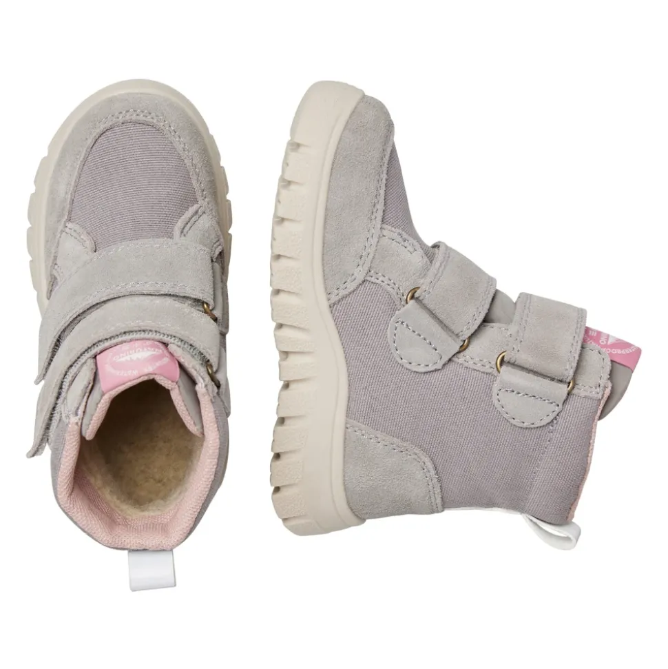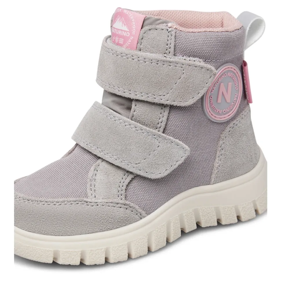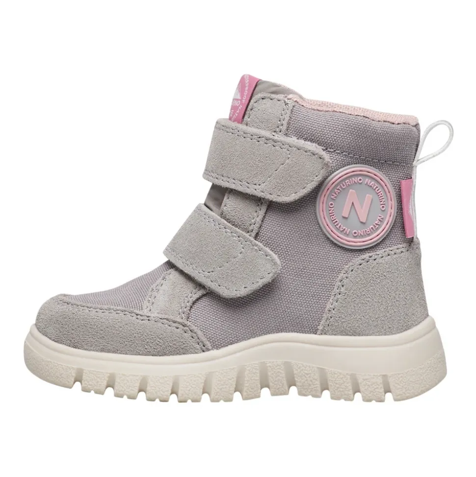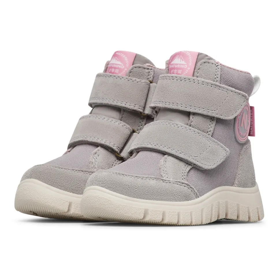 Naturino Geminae 3 VL WP is een waterdichte enkelhoge laars die suède combineert met technisch materiaal voor bescherming in sneeuw en slecht weer. Het heeft een voorgevormde rubberen zool voor verbeterde grip en een geïsoleerde constructie voor extra warmte. Belangrijkste kenmerken: Grijs | Roze grijs | Suède en technisch materiaal | Waterdichte behandeling | Geïsoleerde voering voor warmte | Antislipzool | Dubbele riemsluiting (verstelbare sluiting) | Voorgevormde rubberen buitenzool voor grip | Silhouet tot de enkel | Bovenwerk van twee materialen (suède en technisch materiaal) | Detail met riemsluiting | Samenstelling & verzorging: Suède | Technisch materiaal | Rubber (buitenzool) | Textiel (voering) | Leer (binnenzool)