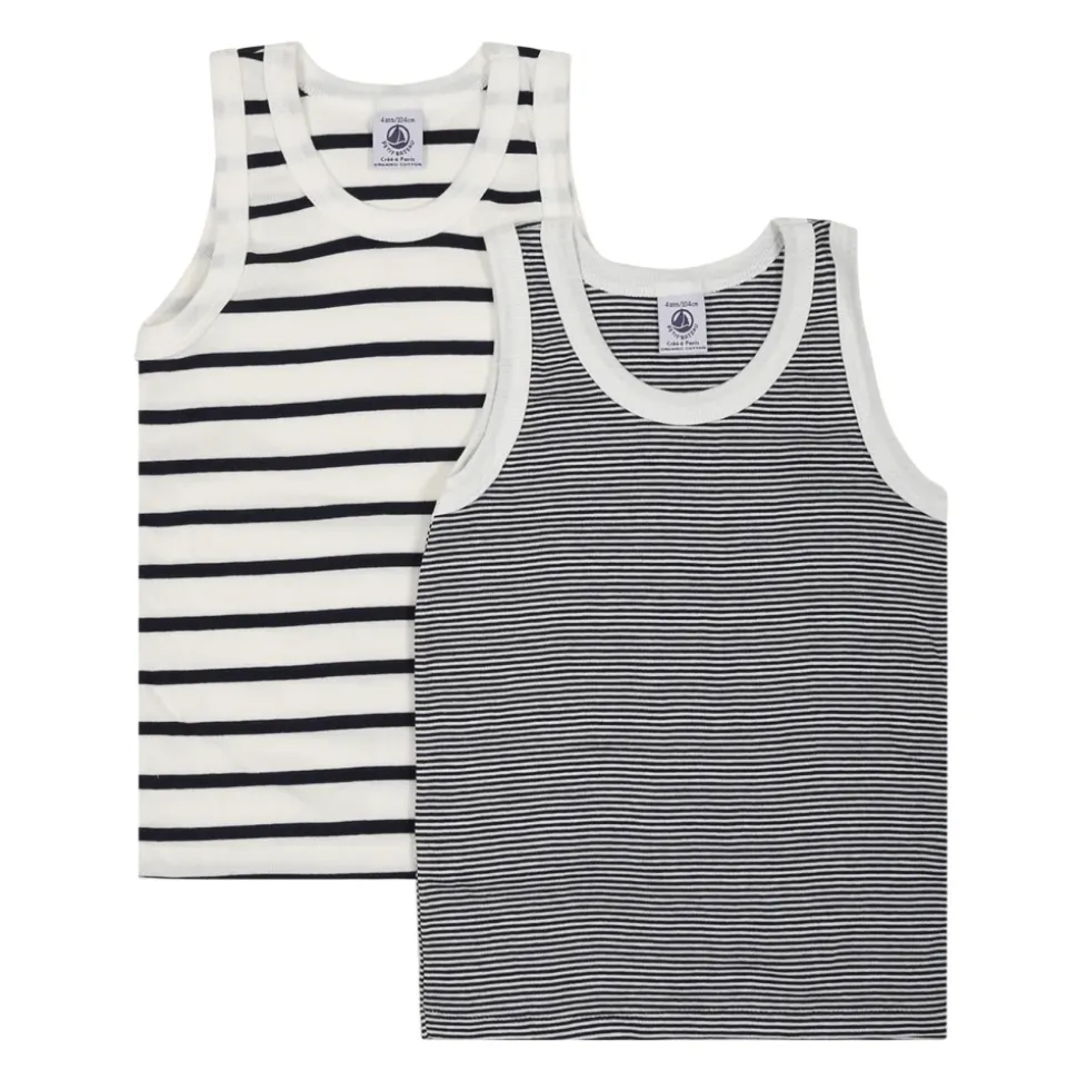 Kleed je kleintje in stijl met deze multicolor set van Petit Bateau. Gemaakt van 100% katoen, deze set bevat twee blauw-wit gestreepte hemdjes met een geribbelde ronde hals en een rood logo op de marinière. Machinewasbaar op 40°C.