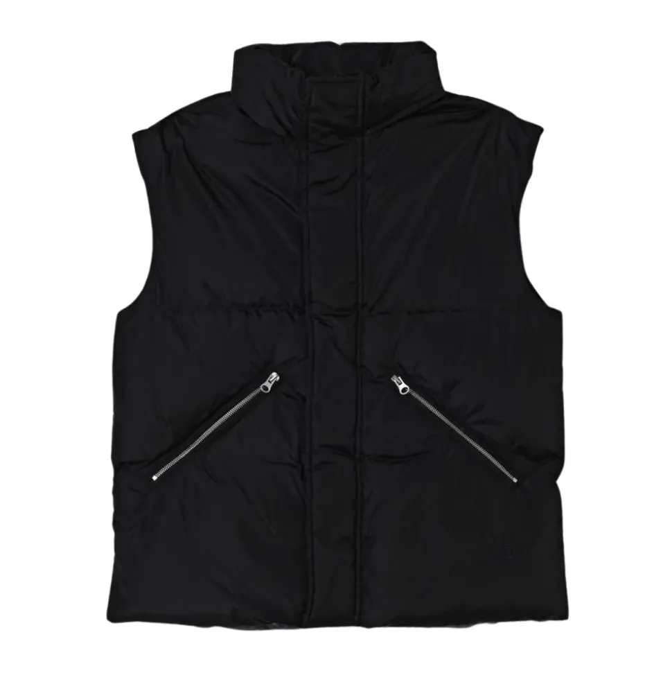 Het gewatteerde vest van MM6 Maison Margiela biedt lichtgewicht isolatie en bewegingsvrijheid, ideaal om in laagjes te dragen bij koeler weer. Belangrijkste kenmerken: Zwart