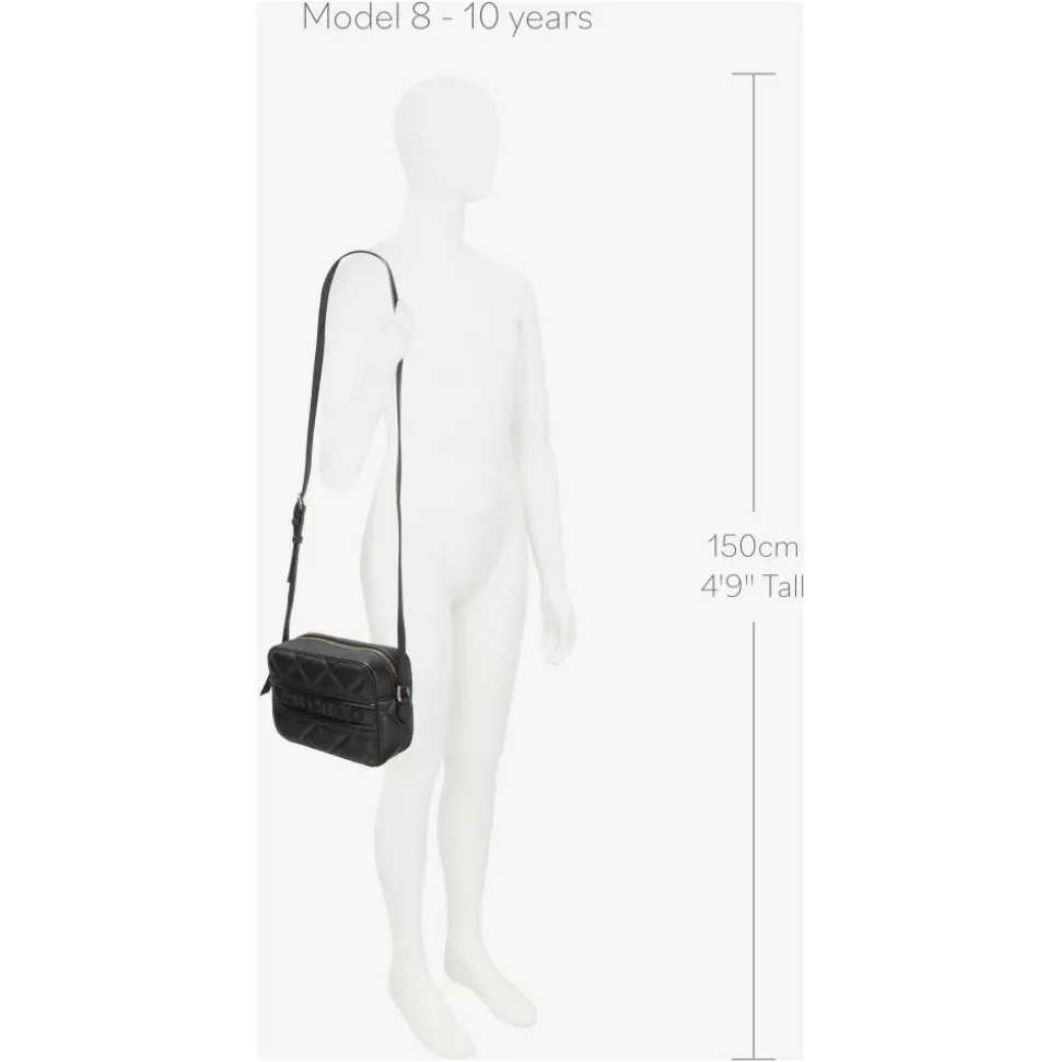 Verrijk de stijl van je kleine meisje met de luxueuze Ada cameratas van Valentino. Dit hoogwaardige stuk heeft een gewatteerd ontwerp, iconische branding, een hoofdritssluiting en een slanke verstelbare schouderband. Afmetingen: 19,5 x 14,4 x 8 cm. Materiaal: 100% PU.