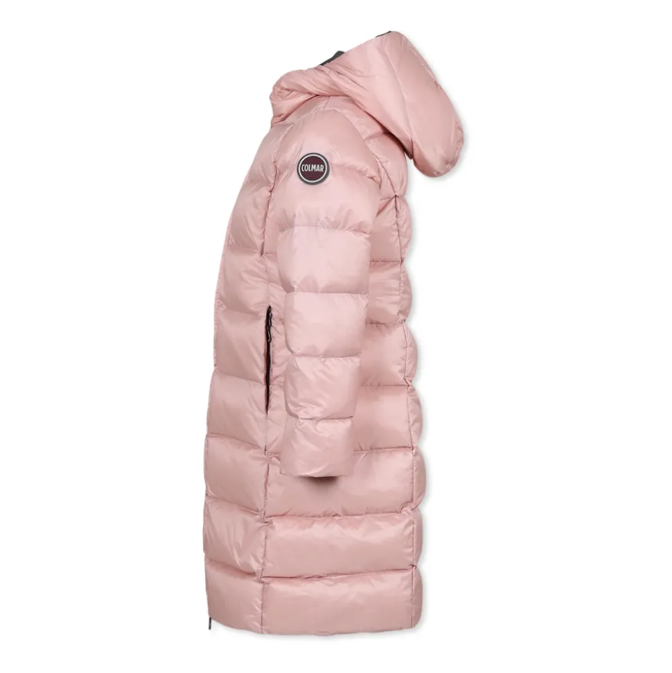 Blijf warm en stijlvol met deze lange roze donsjas van Colmar. Licht gewatteerd en doorgestikt, met lange mouwen, een capuchon, ritssluiting aan de voorkant en ritszakken aan de zijkant. Belangrijkste kenmerken: Roze | 100% Polyamide | Ritssluiting aan de voorkant | Ritszakken aan de zijkant | Lange mouwen | Capuchon | Rubber logo op de mouw en achterkant | Samenstelling en onderhoud: 100% Polyamide | Machinewas op 30°C