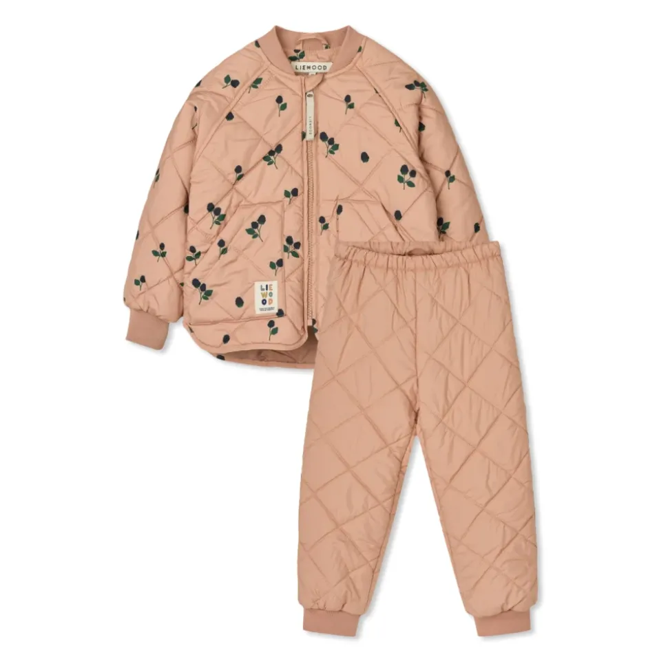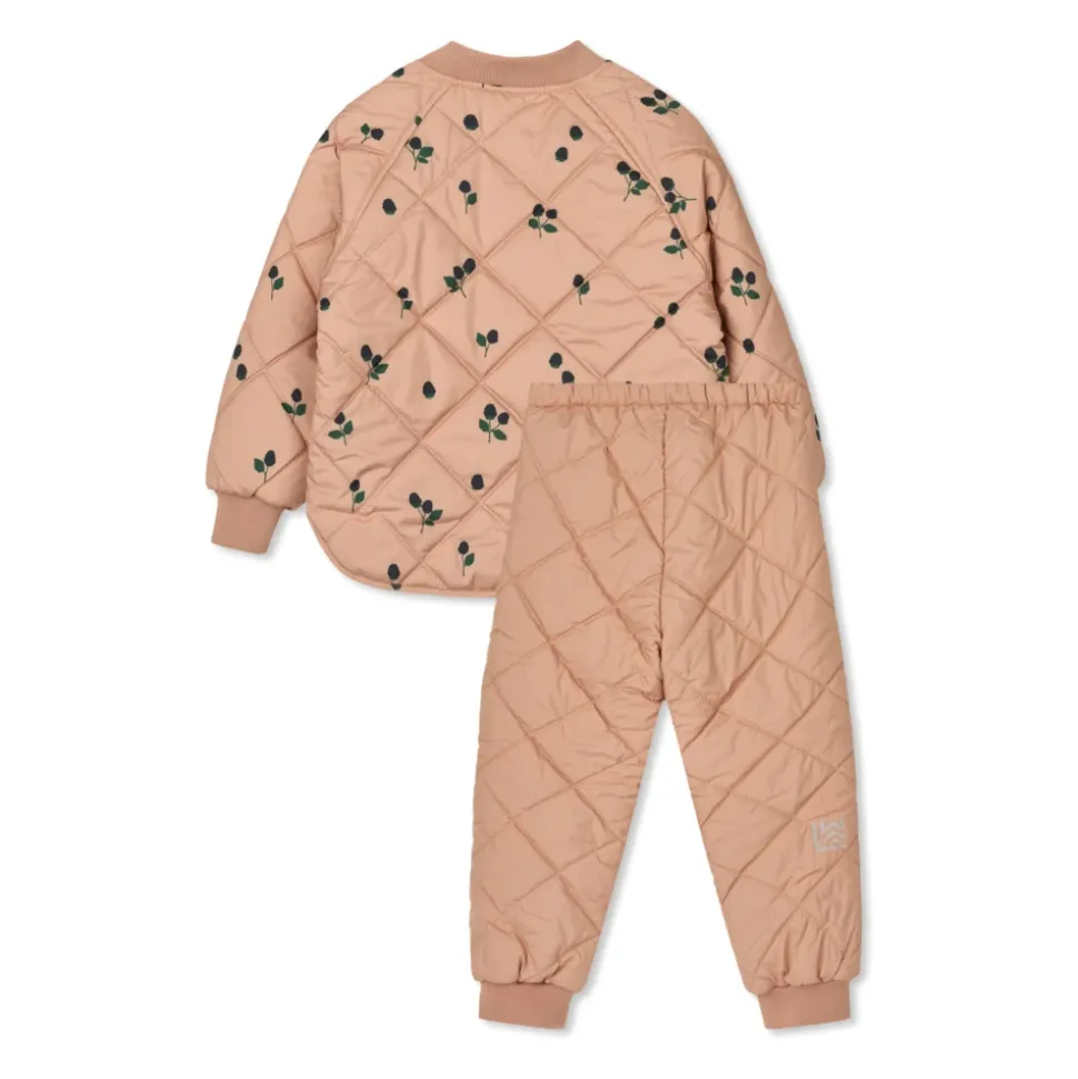 De Liewood Gewatteerde Set is een tweedelige set bestaande uit een jas en een broek, die een diamantgewatteerde afwerking combineert met delicate botanische motieven voor een verfijnde alledaagse look. De lichtgewicht jas in bomberstijl en de broek met elastische tailleband zijn ontworpen voor comfortabele laagjes en gemakkelijke beweging. Belangrijkste kenmerken: Roze | Polyester | Warm | | Gladde stof | Lichtgewicht | Elastische tailleband | Lichtgewicht constructie | Ontworpen voor bewegingsvrijheid | Diamantgewatteerd patroon | Groene en zwarte botanische print | Jas in bomberstijl met afgeronde zoom | Tweedelige set (jas en broek) | Afmetingen & pasvorm: Rechte snit | Samenstelling & onderhoud: Polyester