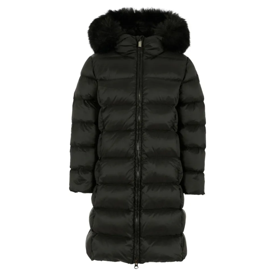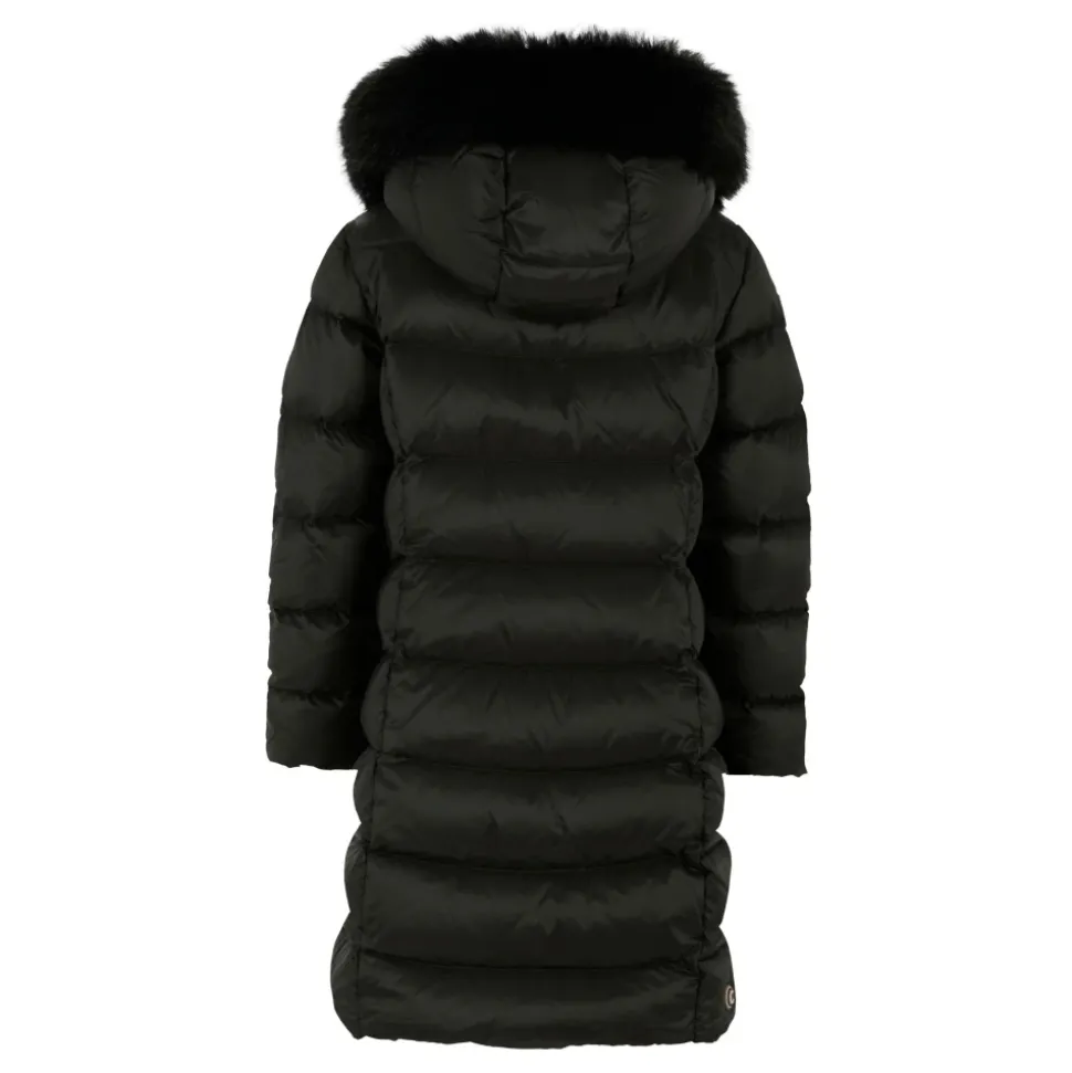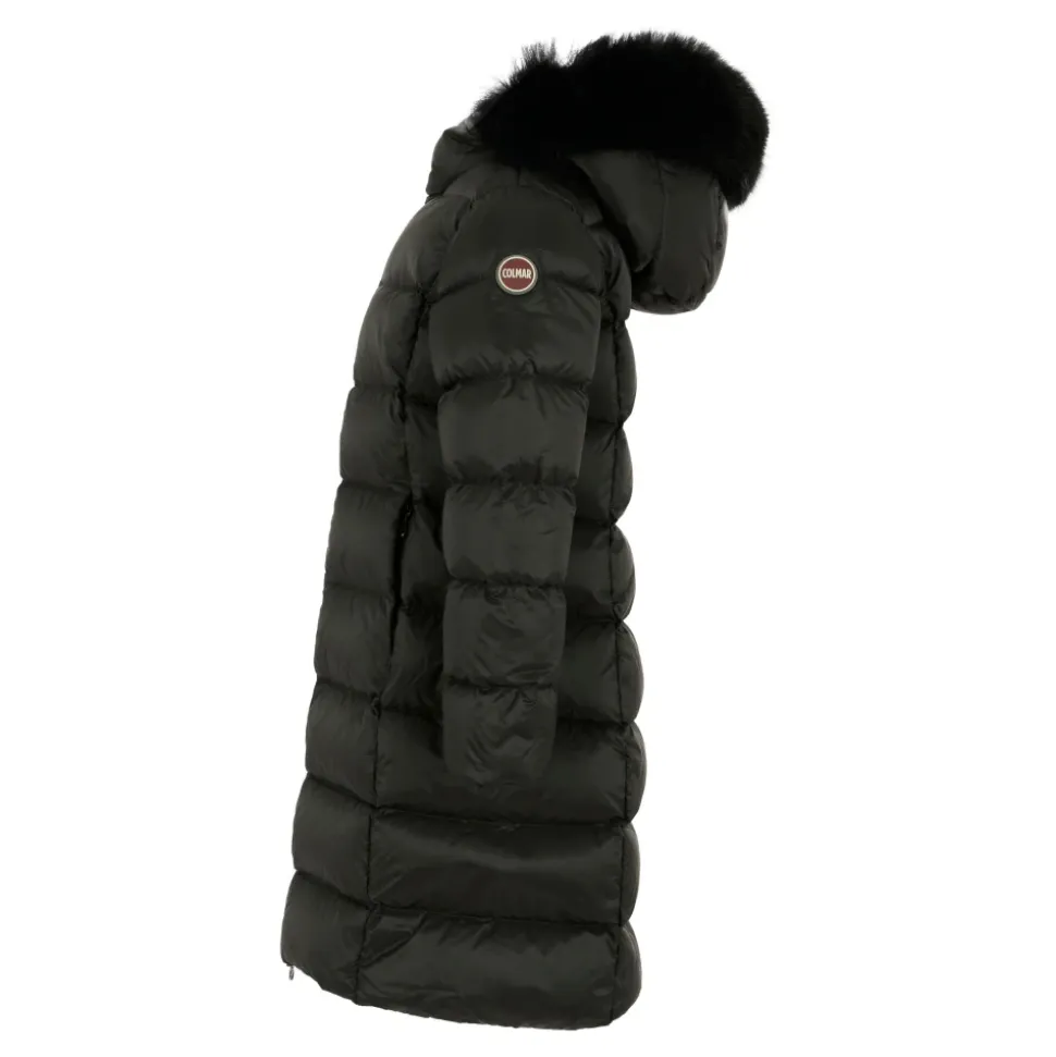 Houd je kleintje warm en stijlvol met deze Colmar kinder winterjas. Deze zware zwarte gewatteerde en doorgestikte donsjas heeft lange mouwen, een capuchon met een afneembare imitatiebontafwerking, een ritssluiting aan de voorkant en zijzakken met rits. Het is versierd met een logopatch op de mouw. Gemaakt van 100% polyamide. Machinewas op 30°C.