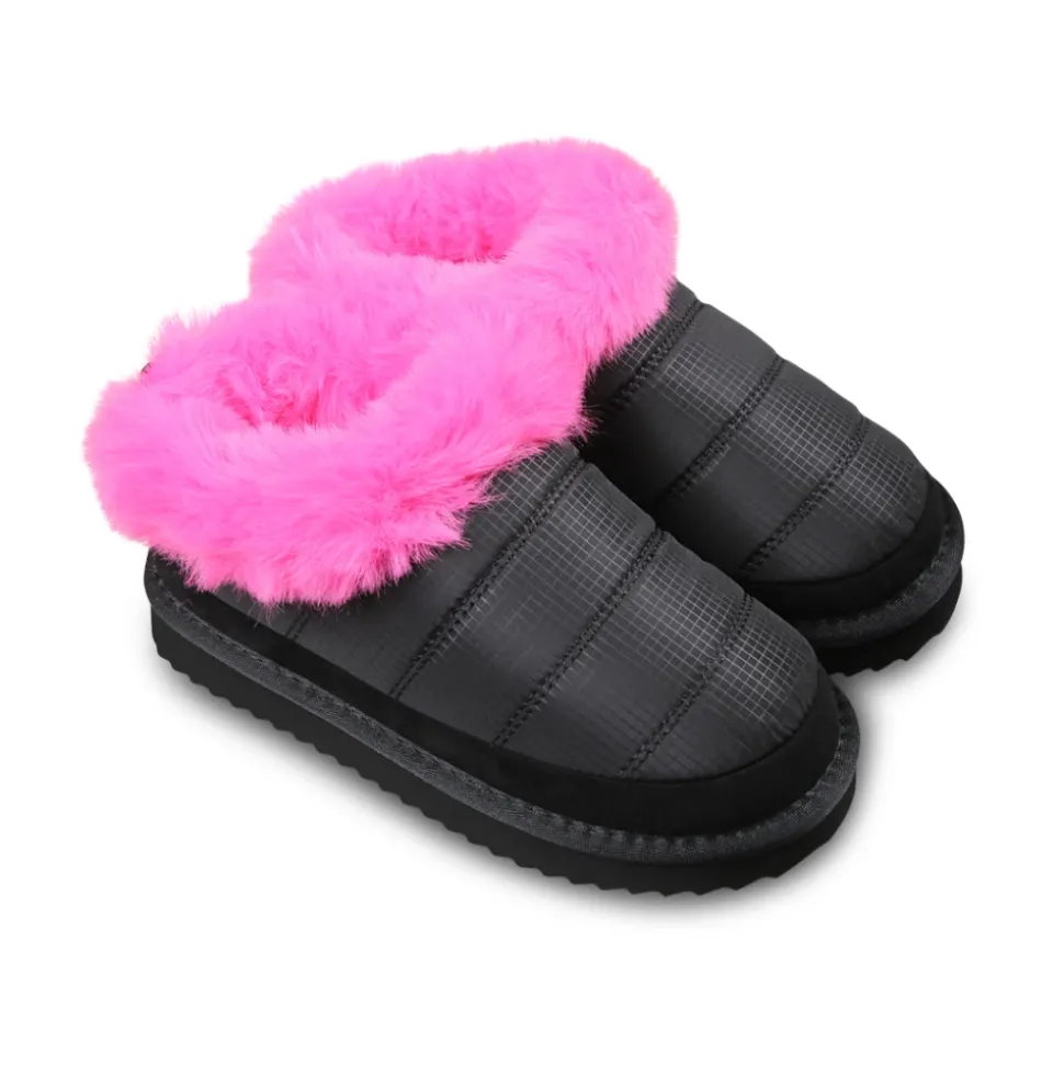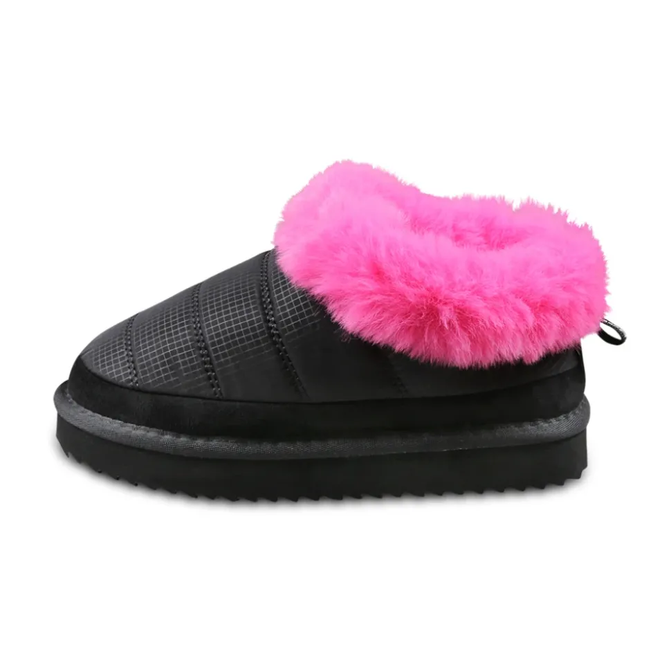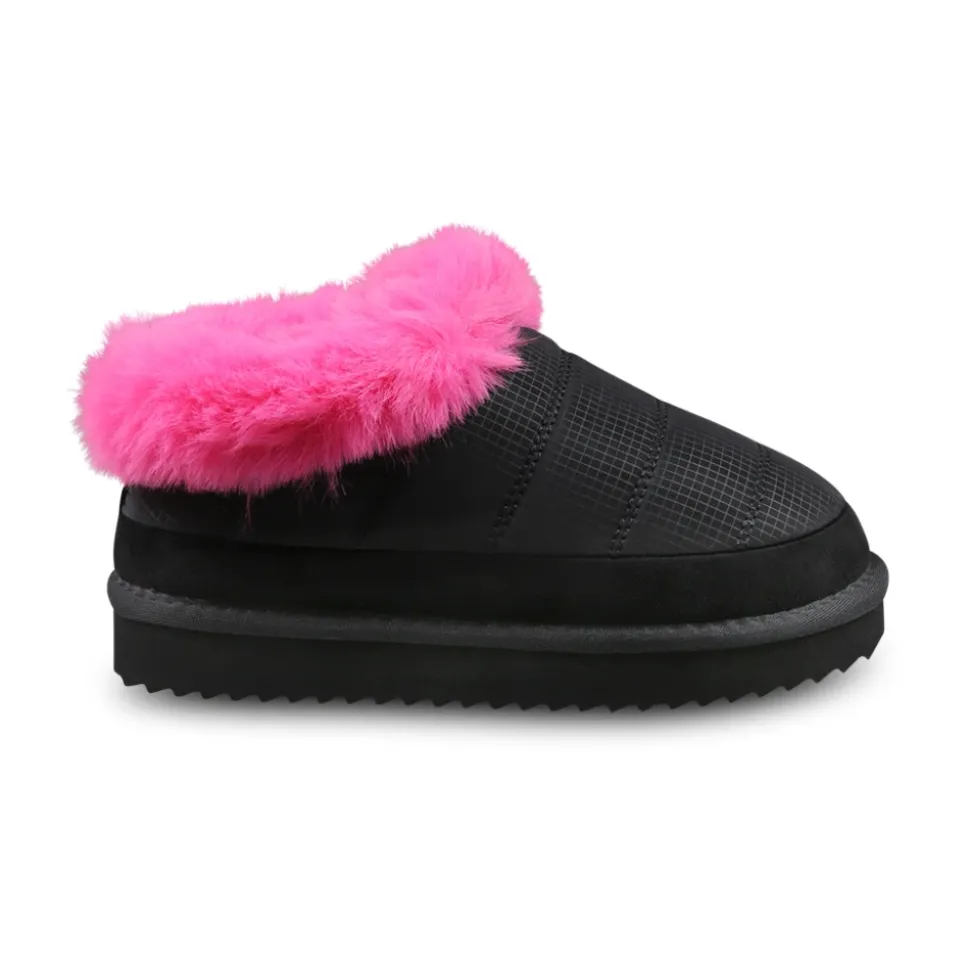 Upgrade de stijl van je kind met deze Monnalisa zwarte gewatteerde instaplaarzen met rubberen zool en fuchsia nepbontdetail. Gemaakt van 100% stof.
