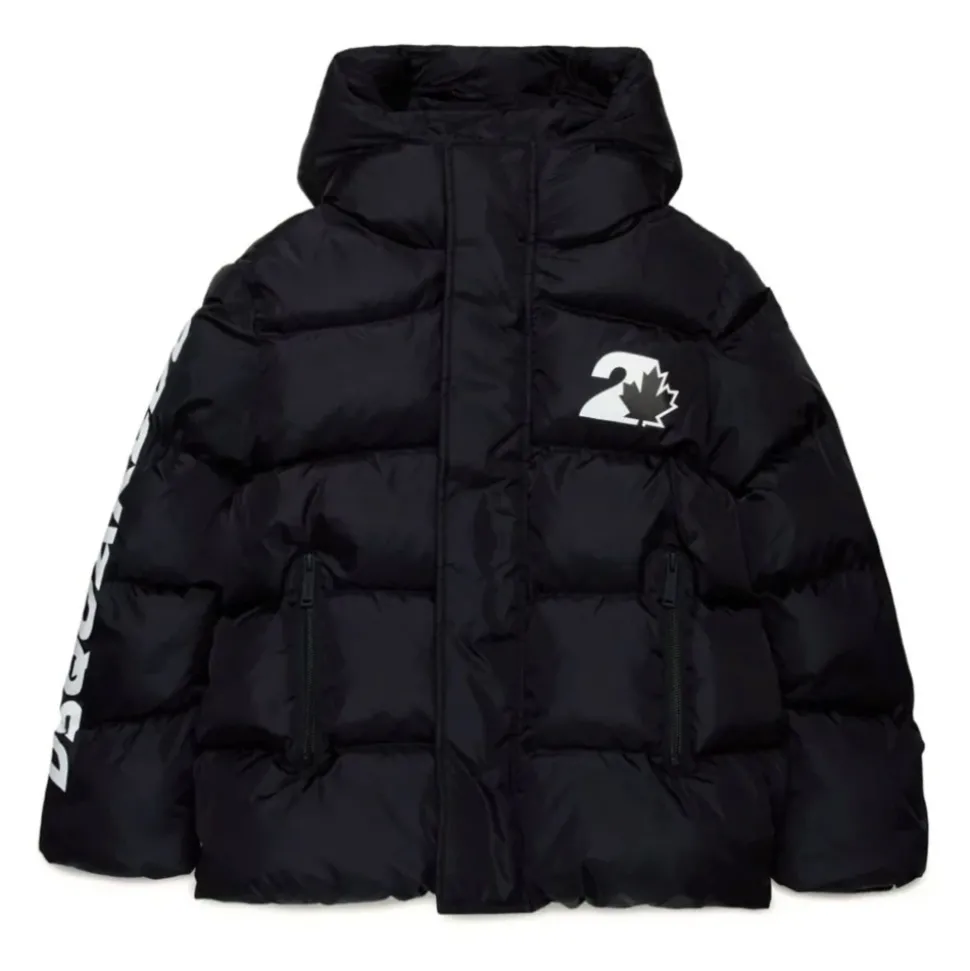 Blijf warm en stijlvol met deze Dsquared2 winterjas voor kinderen. Gemaakt van glanzend nylon met klassieke gewatteerde strepen en vulling van nepveren, biedt het zowel warmte als comfort. De vaste capuchon, stedelijke grafische print op de borst en het contrasterende Dsquared2-logo op de mouw voegen een moderne touch toe. Voorzien van verborgen ritssluiting, ritszakken aan de voorkant en geribbelde gebreide manchetten voor een functioneel ontwerp. Perfect voor informele gelegenheden, deze jas is gevoerd voor extra comfort. Geïmporteerd uit China. Samenstelling: 100% Polyamide-Nylon + Rib 64% Polyester 35% Katoen 1% Elastaan – Voering 100% Polyamide-Nylon + Vulling 100% Polyester.