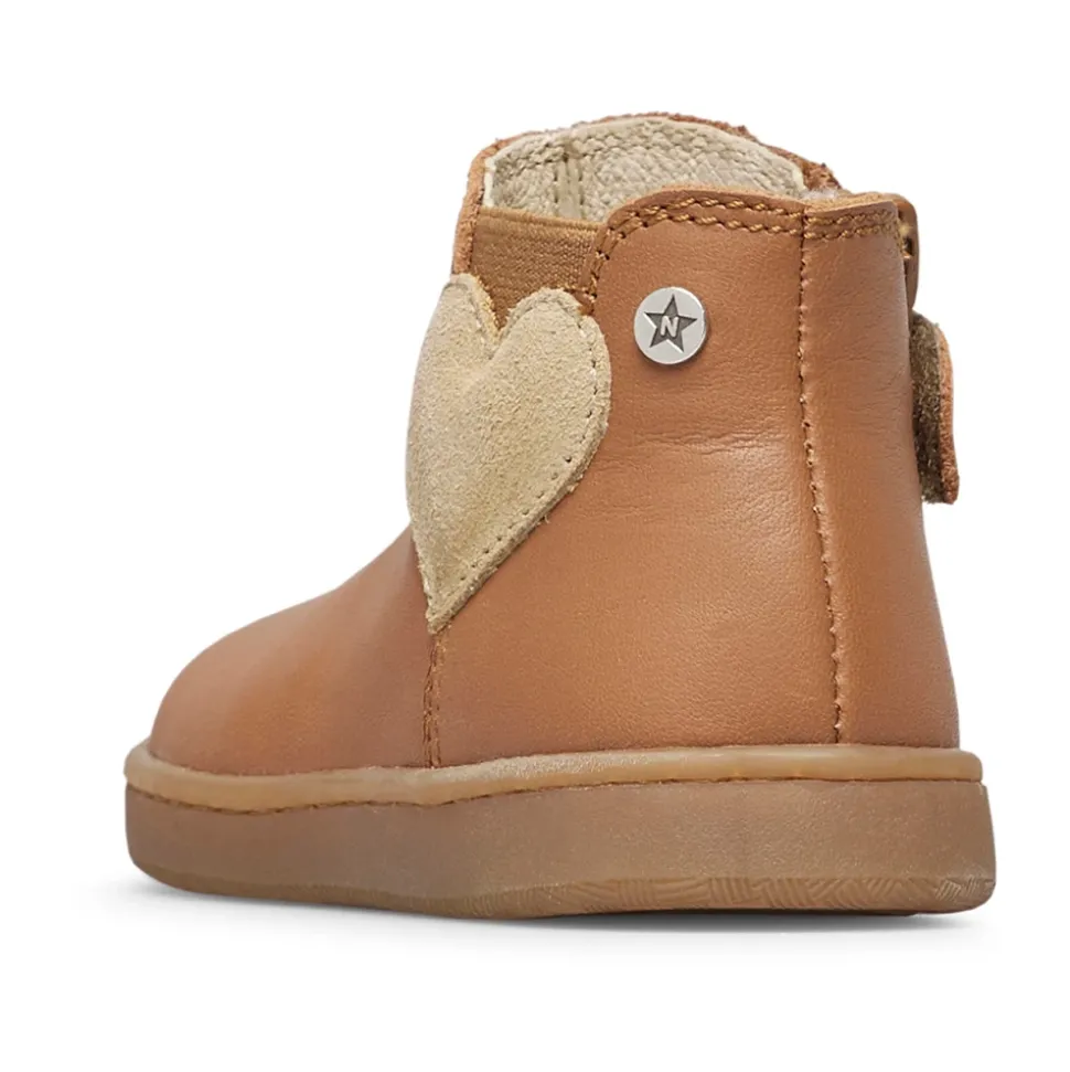 De Naturino Glarny High 2 enkellaarsjes combineren een leren bovenwerk met een glitterhartdetail en een interne ritssluiting voor gemakkelijk aan- en uittrekken – ideaal voor dagelijks gebruik. citeturn0search1turn0search3turn0search6 Belangrijkste kenmerken: Bruin | Lichtbruin | Leer | Antislip rubberen zool | Interne ritssluiting | Elastische zij-inzet | Ronde neus | Glitterhartdetail aan de zijkant | Samenstelling & verzorging: Leer (bovenwerk, voering, binnenzool) | Rubber (buitenzool) | Elastiek (zij-inzet)