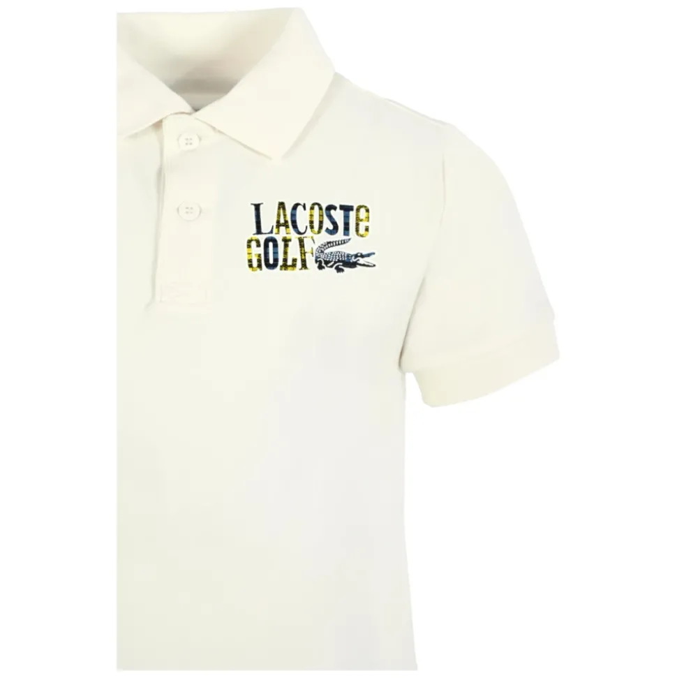 Kleed je kleintje in stijl met deze witte Lacoste poloshirt voor kinderen. Gemaakt van stretch katoen piqué, het heeft korte mouwen, een puntkraag en een knoopsluiting aan de voorkant. De shirt biedt UPF 50 bescherming en is versierd met een golfprint op de achterkant, een logo op de borst en een rubberen krokodilvormige patch onderaan. Materiaal: 57% polyamide, 43% katoen. Machinewas op 30°C.