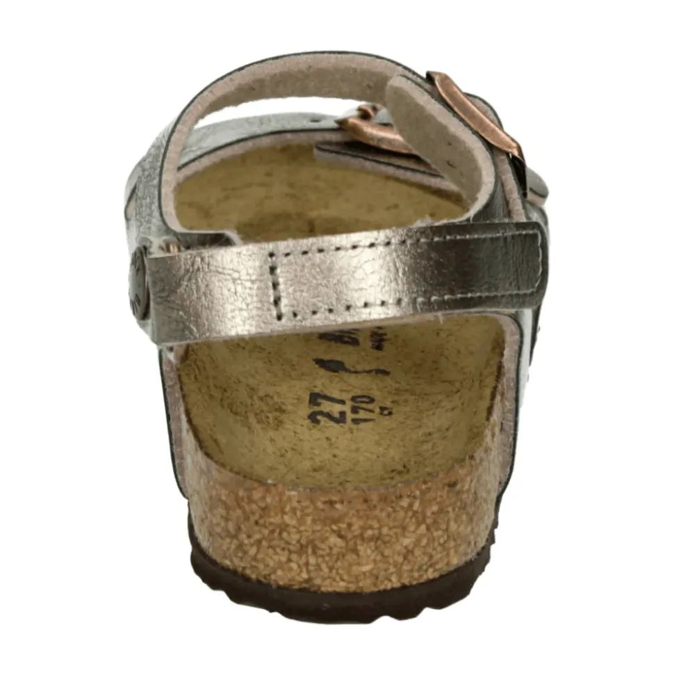Verrijk de stijl van je kleine meid met deze Birkenstock voetbedsandalen. Het model RIO KIDS GRACEFUL TAUPE BF in bronskleur heeft een wijdte 2 pasvorm, vast voetbed, rubberen zool en birko-flor bovenmateriaal.