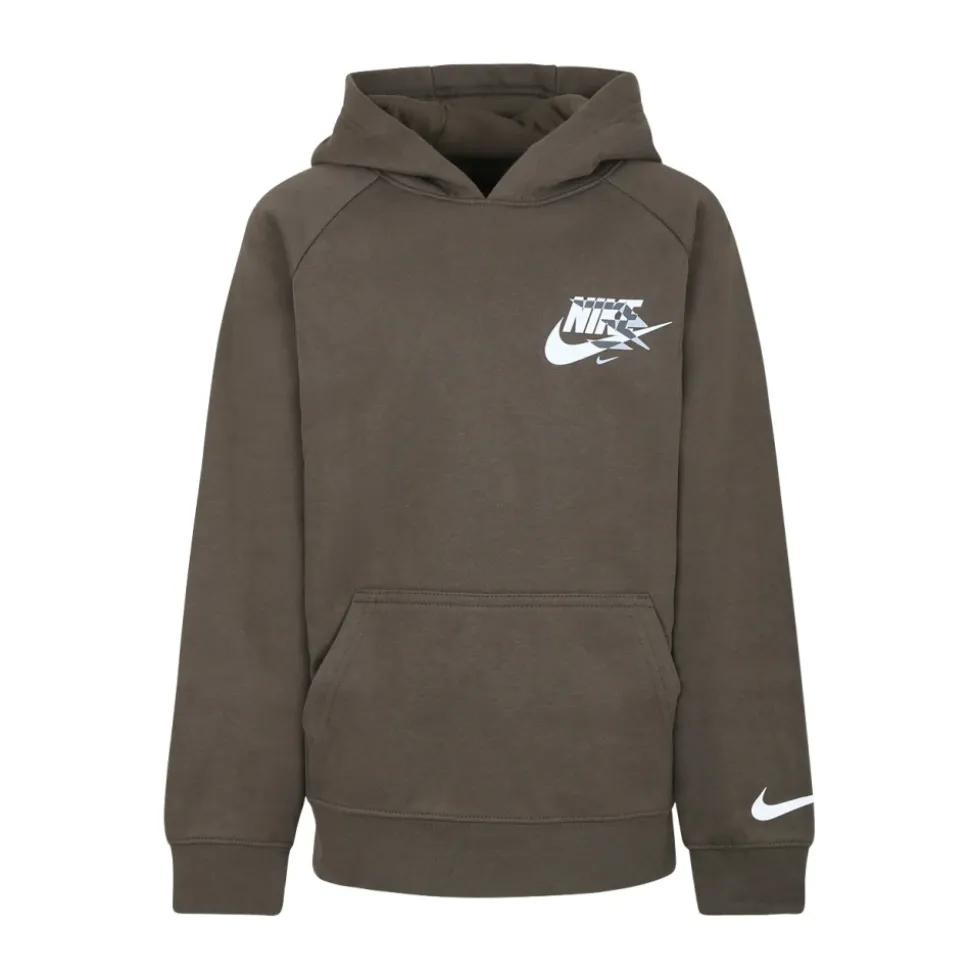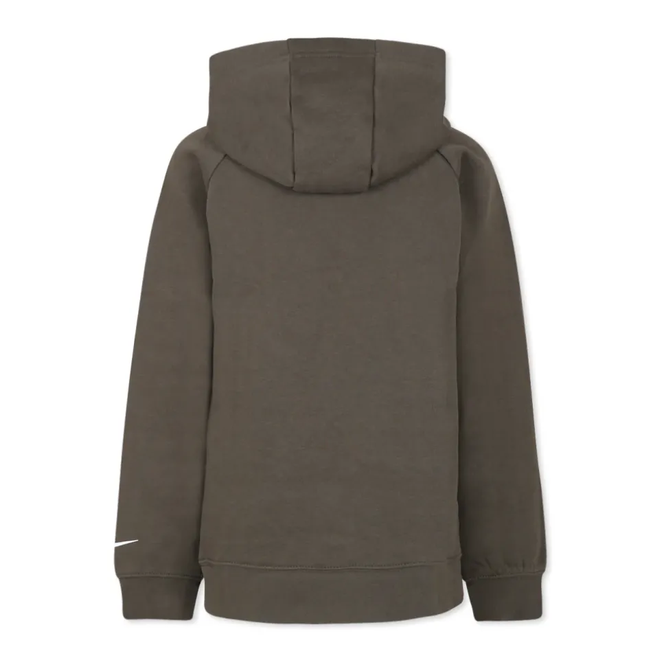 Blijf gezellig en stijlvol in deze groene Nike hoodie gemaakt van fleece katoen. Met lange mouwen, een capuchon, voorzak, geribbelde manchetten en zoom, en bedrukte logo’s op de borst en het iconische swoosh-logo op de mouw. Onderdeel van de Russel Wilson-collectie. Gemaakt van 60% katoen, 40% polyester. Machinewas op 30°C.