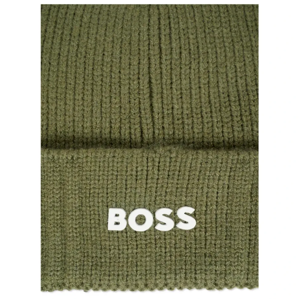 Voeg een vleugje kleur toe aan de outfit van je kleintje met deze groene gebreide muts van Hugo. Voorzien van een omslag en een wit rubberen logo aan de voorkant, is deze muts zowel stijlvol als comfortabel. Gemaakt van een mix van viscose, polyester, acryl en polyamide. Machinewasbaar op 30°C.