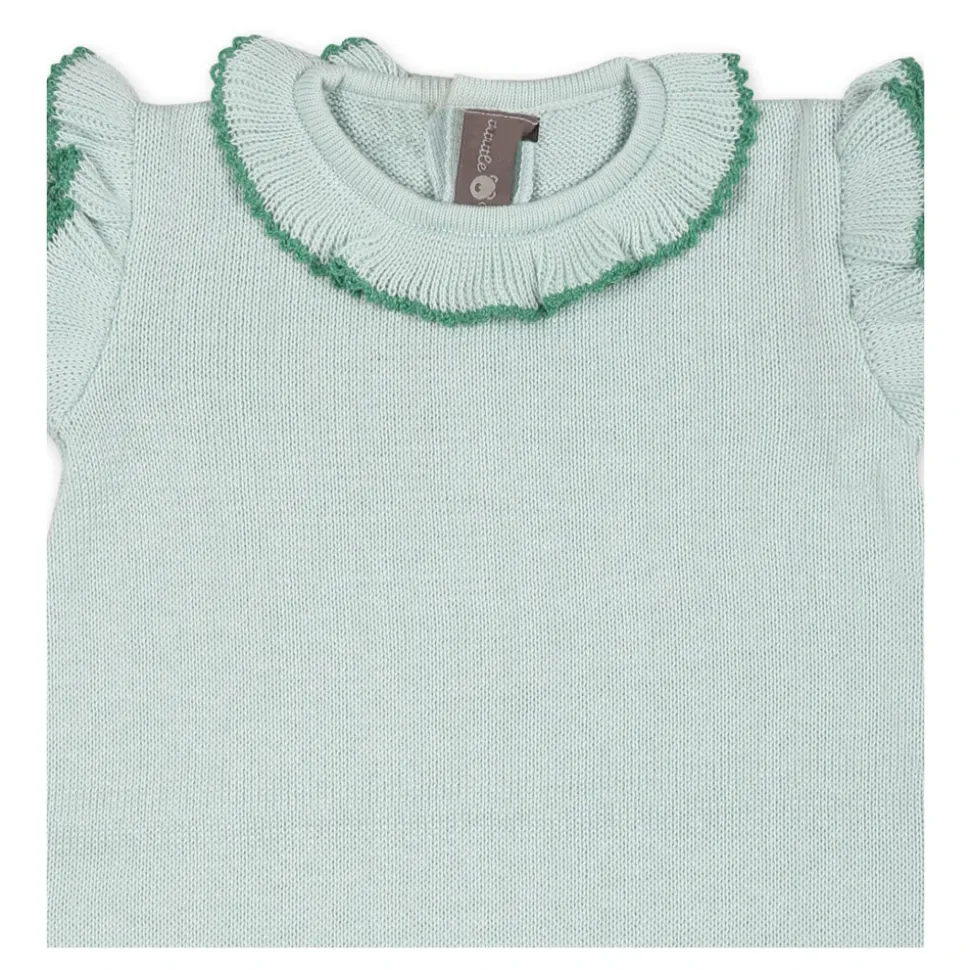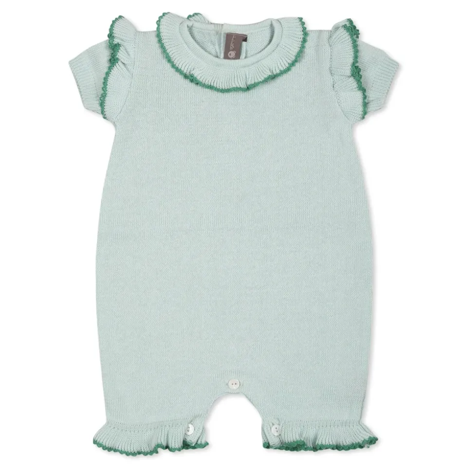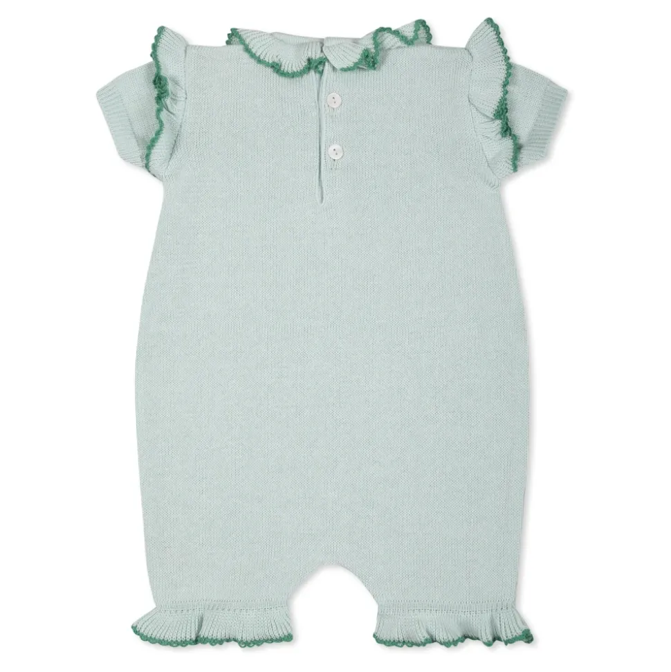 Kleed je kleintje in stijl met deze groene katoenen romper van Little Bear. Met korte mouwen, ronde hals en schattige ruches rond de hals, schouders en onderkant. Gemaakt in Italië van 100% katoen. Alleen handwas.