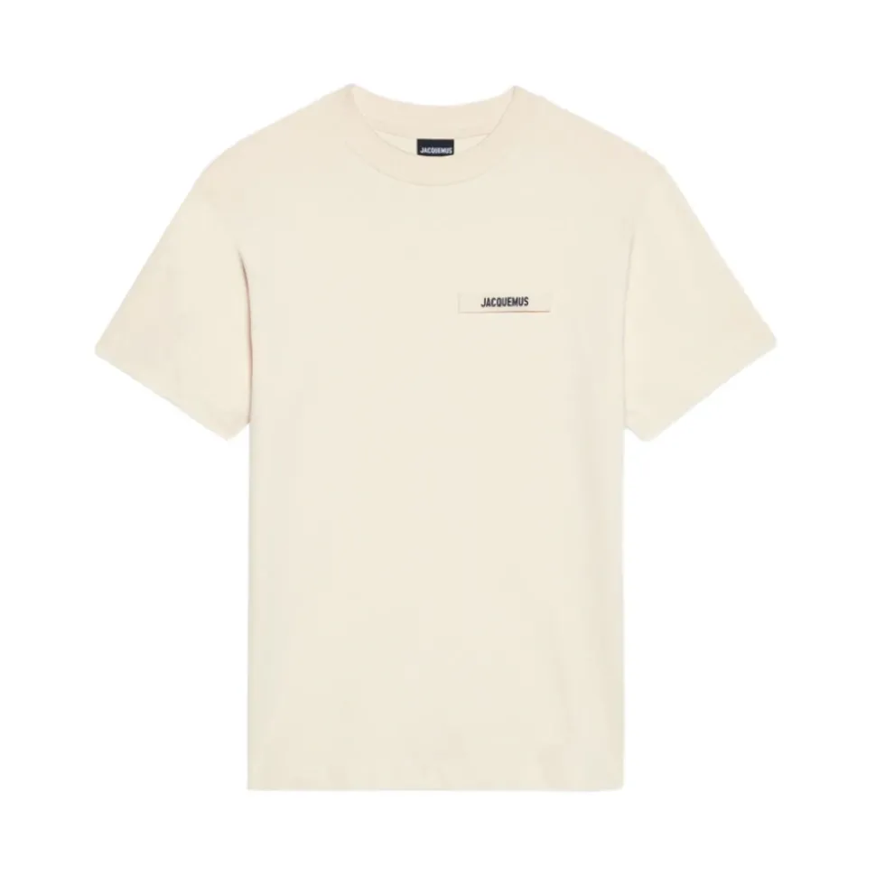 Upgrade je casual look met deze beige Jacquemus ‘The Gros Grain’ T-shirt met korte mouwen. Gemaakt van 100% katoen, met een klassieke geribbelde ronde hals, rechte zoom en een patch met geborduurd logo op de borst. De relaxte pasvorm voegt een moderne touch toe aan dit essentiële kledingstuk voor mannen.