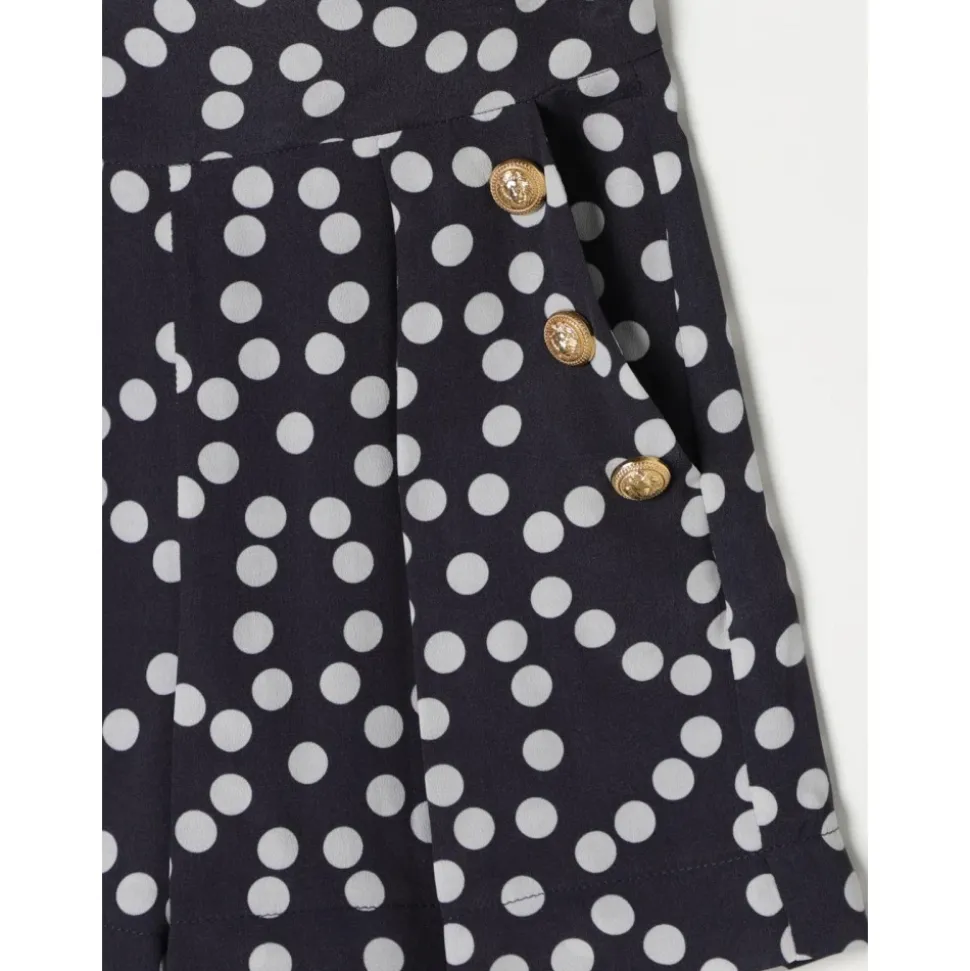 De Balmain high-waisted shorts met stipprint, decoratieve knopen en zakken combineren een klassiek stippenpatroon met een getailleerd high-rise silhouet voor een verzorgde, alledaagse look. Decoratieve knoopaccenten en praktische zakken maken deze shorts zowel stijlvol als functioneel. Belangrijkste kenmerken: Zwart | Zakken | Decoratieve knoopaccenten | Stipprint | High-waisted silhouet | Knoopsluiting aan de voorkant | Afmetingen en pasvorm: High-waisted pasvorm
