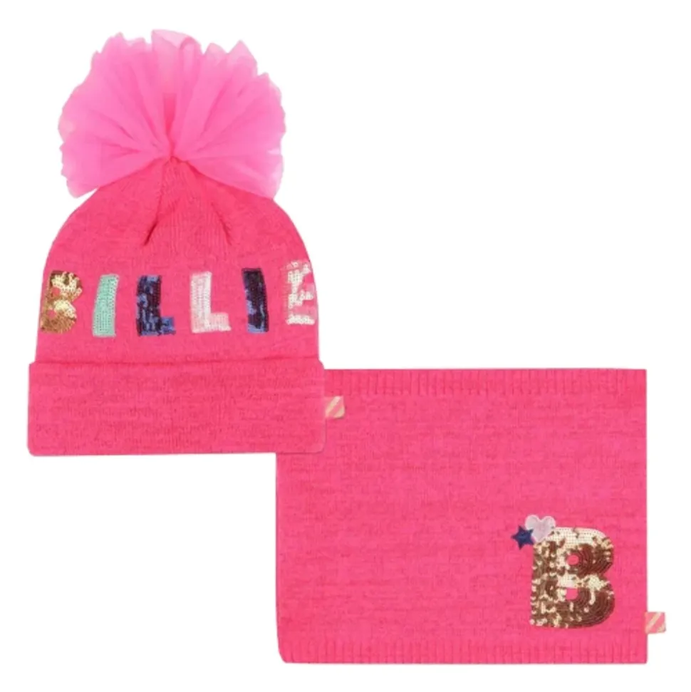 De Billieblush Hoeden & Sjaal Set combineert een gebreide hoed met een bijpassende nekwarmer, met een veelkleurig paillettenlogo en tule inzetstukken voor een speels winteraccessoire. Ontworpen voor opvallende laagjes, de set voegt textuur en glans toe aan outfits voor koud weer. Belangrijkste kenmerken: Roze | Fuchsia | Acryl | Warm | Tweedelige set (hoed en nekwarmer) | Gemakkelijk te combineren met bovenkleding | Gebreid ontwerp | Logo detail met veelkleurige pailletten | Tule inzetstukken | Samenstelling & verzorging: 100% Acryl