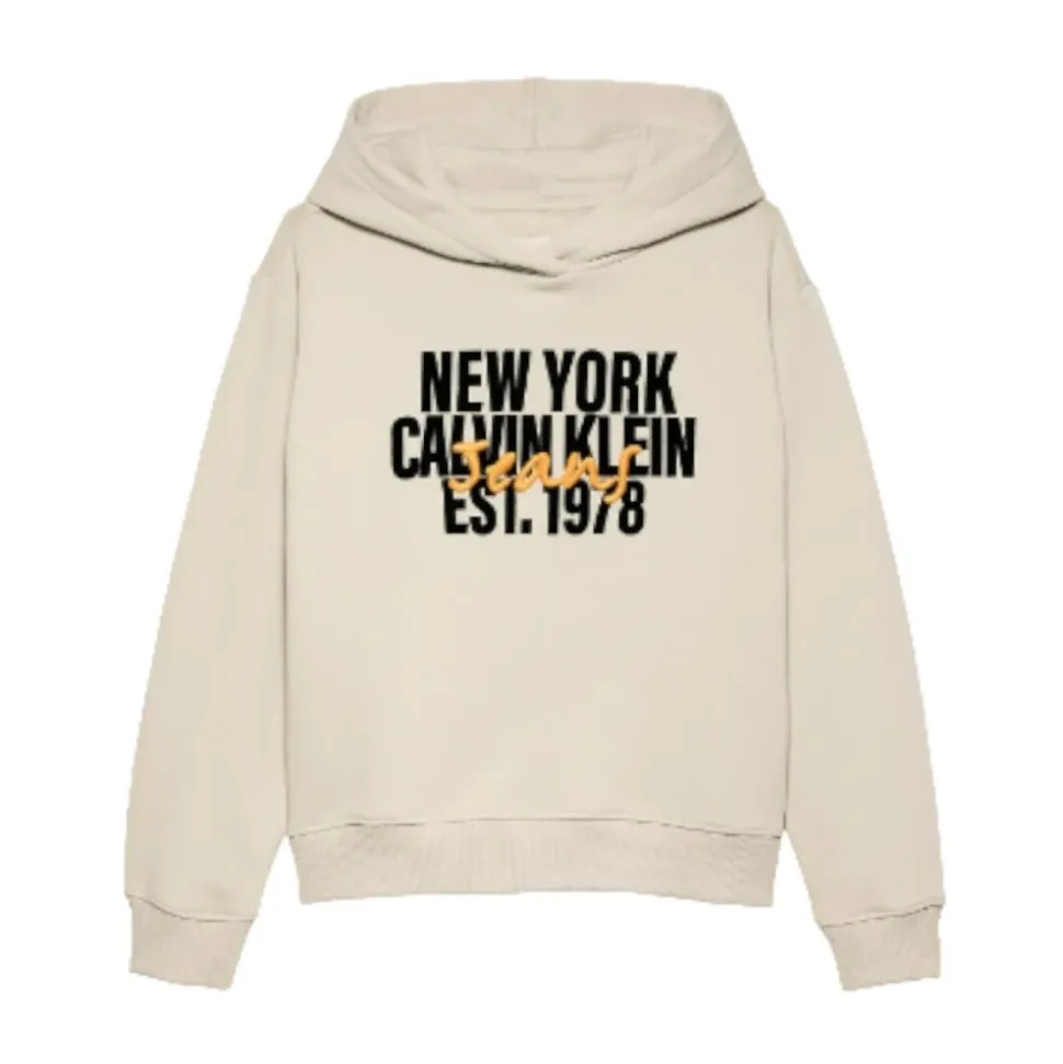 Calvin Klein Hooded Sweatshirt, ontworpen voor dagelijks casual gebruik, met een relaxed silhouet en een kenmerkend logo aan de voorkant met New York-geïnspireerde details. Belangrijkste kenmerken: Beige | Katoen | Zachte fleece stof | Comfortabel de hele dag te dragen | Capuchon | Geribbelde manchetten en zoom | Pullover (geen sluitingen) | Calvin Klein logo aan de voorkant met New York-geïnspireerde graphic | Contrasterende kleurdetails | Minimalistisch, functioneel ontwerp | Lange mouwen | Afmetingen & pasvorm: Relaxte pasvorm | Samenstelling & verzorging: 88% katoen
