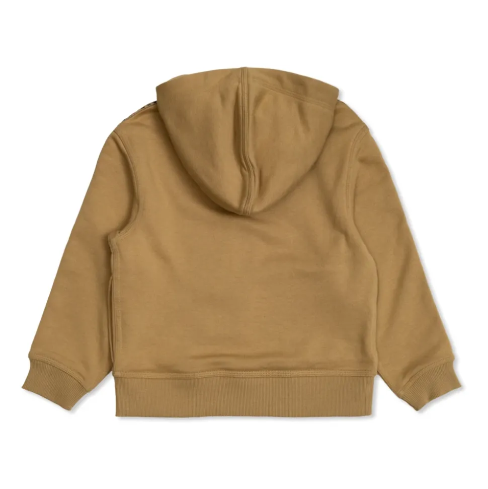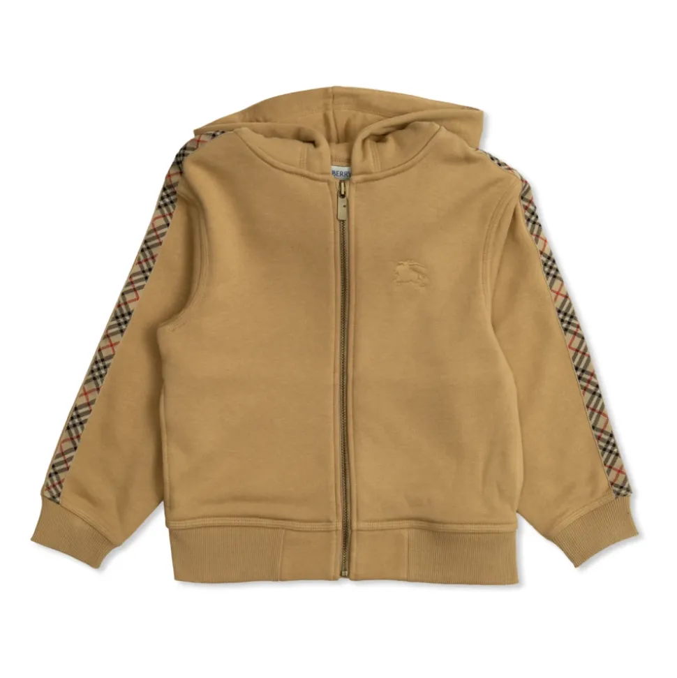 De hoodie uit de exclusieve BURBERRY KIDS-collectie is een eerbetoon aan tijdloze elegantie en een toewijding aan de hoogste normen van comfort voor de jongsten. Het model in een klassieke beige tint maakt indruk met zijn eenvoudige snit en nauwgezette afwerking. De zachte, aangename katoenen breisel wikkelt de silhouet zachtjes in, zodat comfort de hele dag gegarandeerd is. Opvallende details trekken de aandacht – het lint genaaid op de mouwen in het iconische ruitpatroon en het nauwkeurig geborduurde logo met de ruiter te paard, dat het onmiskenbare handelsmerk van Burberry is. De hoodie sluit met een volledige rits, wat de praktische kant benadrukt en gebruiksgemak biedt. WAAROM IS DIT PRODUCT DE AANKOOP WAARD? * Uitzonderlijke materiaalkwaliteit die comfort garandeert * Nobel, universeel ontwerp voor de veeleisende * Onderscheidende details die authenticiteit bevestigen * Perfecte presentatie zowel voor dagelijks gebruik als speciale gelegenheden