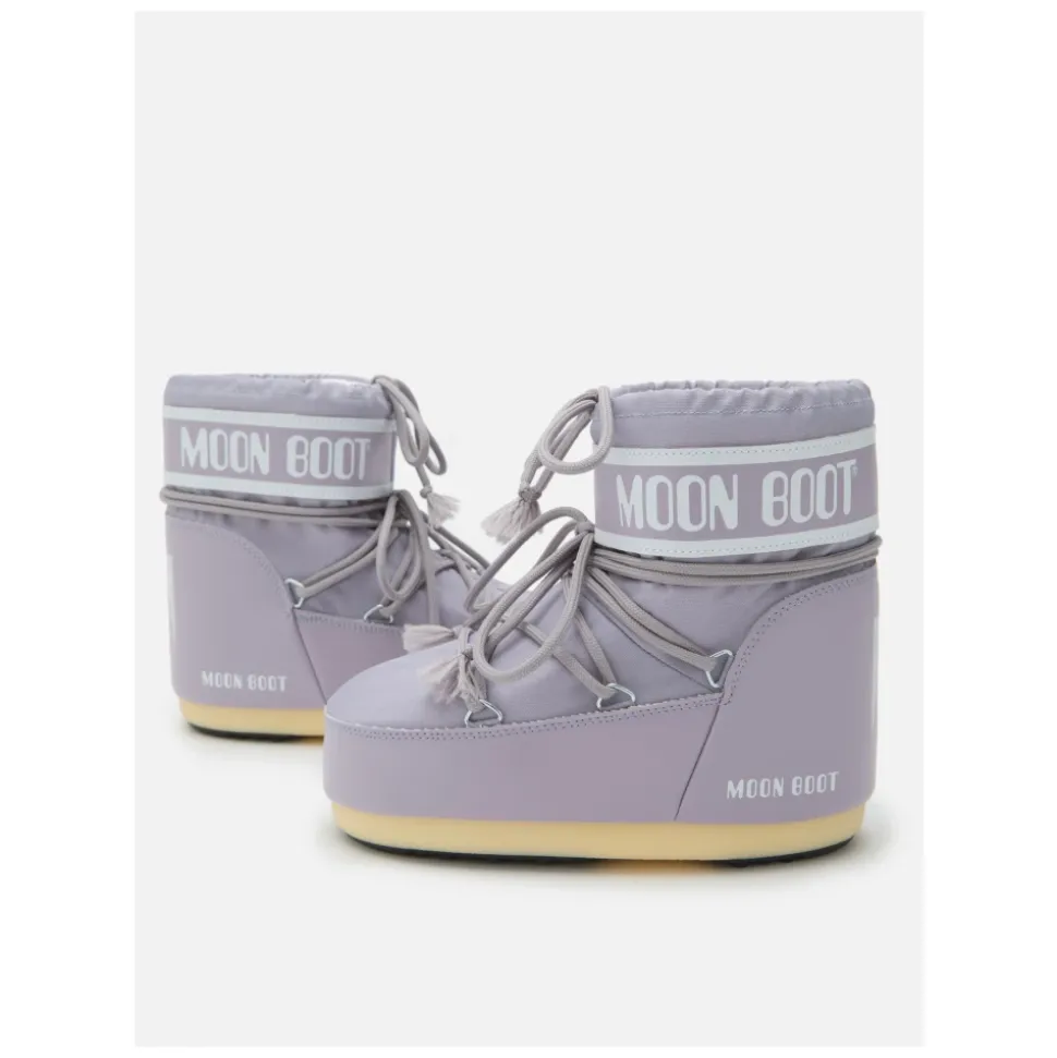 Moon Boot Icon Low Nylon Boots zijn lage, geïsoleerde sneeuwlaarzen ontworpen voor natte, koude omstandigheden. Hun waterafstotende nylon bovenwerk en gripvaste zool bieden warmte en grip voor dagelijks gebruik in de winter. Belangrijkste kenmerken: Paars | Lila | Nylon | 100% waterafstotend bovenwerk | Geïsoleerd voor koud weer | Rubber/thermoplastische zool met zuignapgrip | Gekruiste buisvormige veters | Trekkoord bij de schachtopening | Slip-on ontwerp voor gemakkelijk aan- en uittrekken | Multisize schuimvoering voor adaptief comfort | Ambidextere constructie | Ronde neus | Paneel met logoprint en logo-details aan de zijkant | PVC hielstuk en afwerking | Zilverkleurige metalen oogjes | Afmetingen & pasvorm: Valt mogelijk klein; Moon Boot raadt aan een maat groter te bestellen. | Multisize schuimvoering ontspant en vormt zich naar de voet voor een adaptieve pasvorm. | Ambidextere constructie (geen links/rechts differentiatie). | Samenstelling & onderhoud: Bovenkant: 60% polyamide, 40% PVC | Voering: 92% polyester, 8% polyurethaan | Zool: 100% thermoplastisch rubber | Verwijder vuil met een zachte borstel. Veeg af met een vochtige doek en mild reinigingsmiddel. Reinig de tussenzool en buitenzool met een zachte borstel en mild reinigingsmiddel. Laat drogen op kamertemperatuur. Bewaar in een beschermende tas.