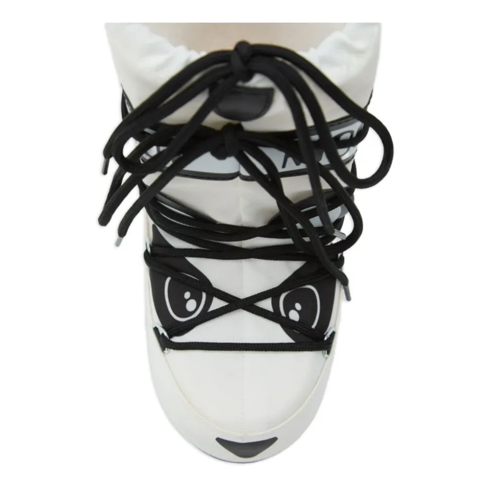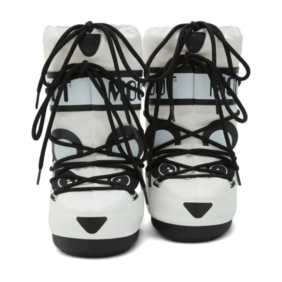 Moon Boot Icon Panda Boots combineren het kenmerkende geïsoleerde silhouet van het merk met een speelse panda-gezicht print, ontworpen voor warme, stabiele slijtage in koude omstandigheden. Belangrijkste kenmerken: Gebroken wit | Zwart | Polyamide | Geïsoleerd | Lichtgewicht thermoplastische tussenzool | Antislip thermoplastische rubberen zool | Kruislingse buisvormige veters | Trekkoord aan de bovenkant voor aanpassing | Ambidexter ontwerp (geen links/rechts onderscheid) | Panda-gezicht print bovenkant | Zwarte logoband | PVC hielstuk en afwerking | Gevoerd, volumineus silhouet | Afmetingen & pasvorm: Aanpasbare pasvorm — multisize schuimvoering vormt zich naar de voet | Samenstelling & onderhoud: Polyamide bovenkant | PVC hielstuk/afwerking | Polyester voering | Multisize schuimvoering | Thermoplastische rubberen zool