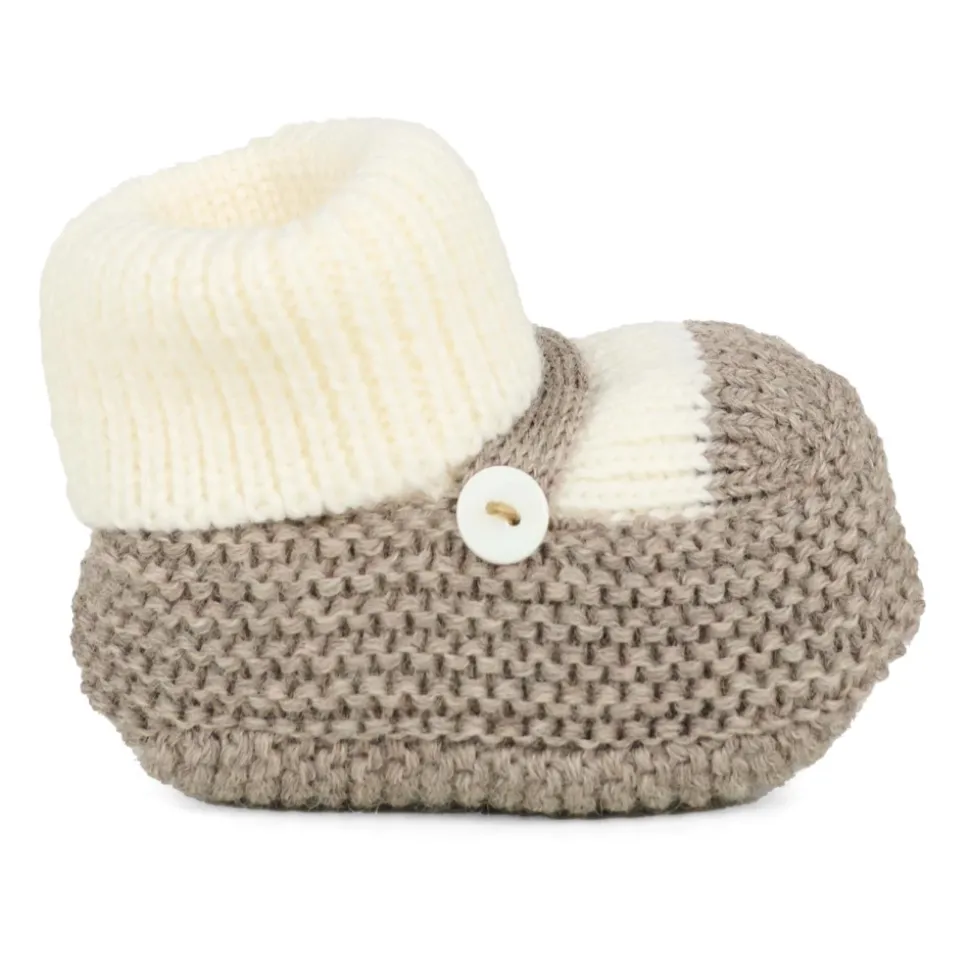 Verwen de voetjes van je kleintje met deze gezellige Little Bear ivoren en grijze binnenschoenen. Voorzien van enkelboeien, trompe l’oeil-effect, parelmoer armband en knoopdetail. Gemaakt in Italië van 100% zuivere wol. Wasinstructies: Wassen op 30°C.