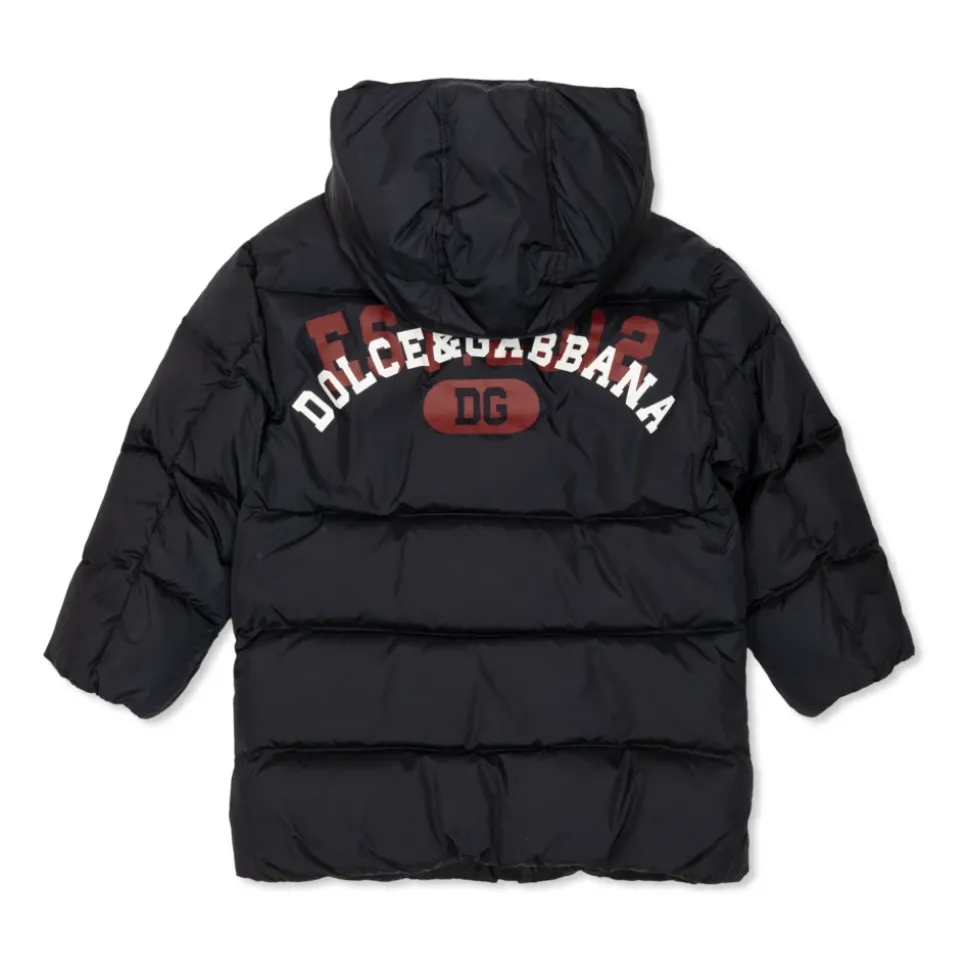 Wij presenteren u een elegante JAS MET EEN AFNEEMBARE CAPUCHON van het gerenommeerde merk DOLCE & GABBANA KIDS. Dit exclusieve aanbod voor jongens van 4-14 jaar combineert vakmanschap van de hoogste kwaliteit met een unieke stijl die elke jonge mode-enthousiasteling zal boeien. Gemaakt van waterdichte materialen zoals polyamide aan de buitenkant en polyester aan de binnenkant, biedt de jas ongeëvenaard comfort en bescherming tegen slecht weer. De dons- en veren vulling zorgt voor uitstekende warmte op koude dagen. De marineblauwe kleur, klassieke rechte snit en gewatteerd horizontaal streepjespatroon geven het een tijdloos karakter. De afneembare capuchon en sluitingen met zowel ritsen als drukknopen verbeteren de functionaliteit, terwijl elegante details zoals drukknopen gegraveerd met