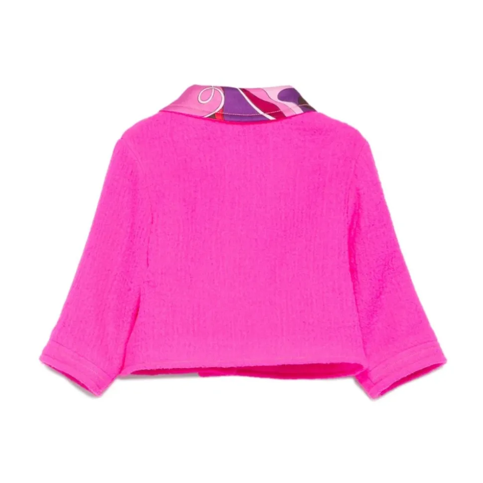 De Pucci jas met contrasterende kraag heeft een fuchsia contrasterende kraag en driekwart mouwen met een knoopsluiting aan de voorkant. Het is ontworpen voor gelaagde looks en moeiteloze styling. Belangrijkste kenmerken: Roze | Fuchsia | Knoopsluiting aan de voorkant | Driekwart mouwen | Contrasterende kraag | Driekwart mouwen | Knoopdetails aan de voorkant | Samenstelling & verzorging: Buitenkant: Viscose 100% | Buitenkant: Virgin wol 100% | Voering: Polyester 100%