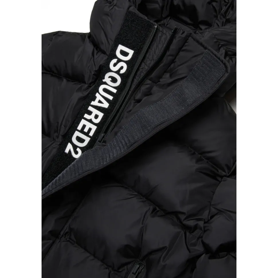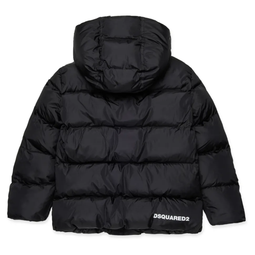 Dsquared2 jas met vaste capuchon en horizontale stiksels, gemaakt van een glanzende technische stof voor warme, comfortabele slijtage. Belangrijkste kenmerken: Zwart | Nero | Technische stof | Vaste capuchon | Ritssluiting aan de voorkant met klittenbandsluiting | Twee verticale zakken met ritssluiting aan de voorkant | Warme, comfortabele voering | Horizontale stiksels | Glanzende afwerking | Contrastlogo op de flap