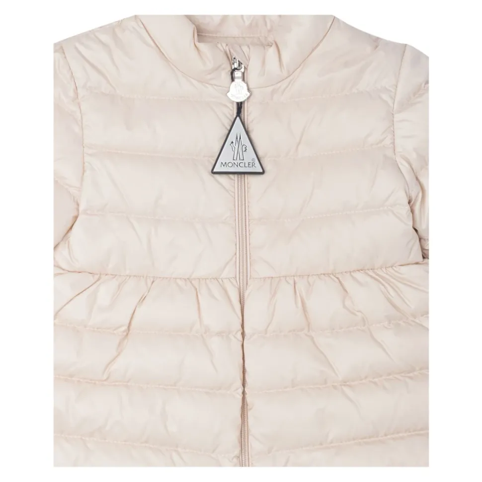 De Moncler Joelle Packable Down Jacket combineert een lichtgewicht constructie met effectieve isolatie. De jas is voorzien van een dons-en-veren vulling voor warmte en een opvouwbaar ontwerp voor eenvoudige layering en opslag. Belangrijkste kenmerken: Lichtroze | Polyamide | Waterafstotende finish | Isolerende donsvulling | Opvouwbaar | Ritssluiting | Elastische manchetten | Bandkraag met kinbeschermingsflap | Geplooide volant | Vilt logo detail | Elastische manchetten | Samenstelling & onderhoud: Buitenkant: 100% polyamide | Voering: 100% polyamide | Vulling: 90% dons, 10% veren | Detail vulling: 100% polyester | Handwas. Niet bleken. Niet in de droogtrommel. Strijken op max. 110°C zonder stoom. Niet chemisch reinigen. Niet professioneel nat reinigen. Plat drogen in de schaduw.