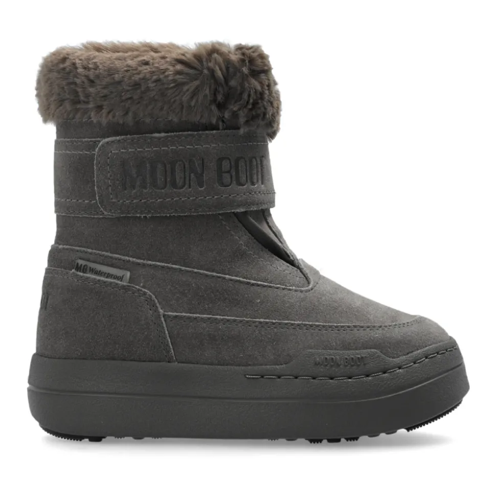 Ontdek de Jr Park Strap Boot Suede van Moon Boot, ontworpen voor stijl en warmte met zijn elegante grijze suède en knusse, harige voering. Belangrijkste kenmerken: Grijs | Suède | Klittenbandsluiting | Afgeronde vorm | Hoge schacht |