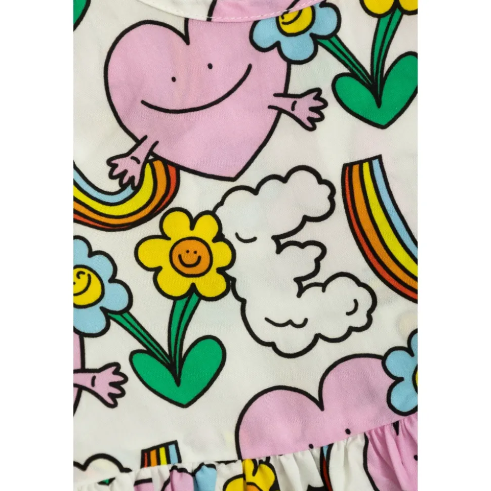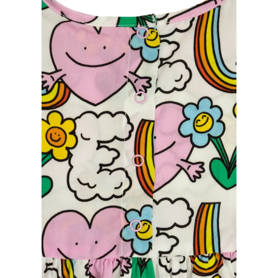 GEPATROONEERDE JURK van Stella McCartney Kids is de belichaming van kinderelegantie gecombineerd met charmante lichtheid. De uitlopende snit, taille naad en delicate plooien in de rok creëren een silhouet dat zorgt voor bewegingsvrijheid en superieur comfort voor de allerkleinsten. Lange mouwen vullen harmonieus de functionaliteit van het ontwerp aan. De stof, een perfecte mix van viscose en lyocell, valt op door zijn zachtheid en ademend vermogen, met een delicate aanraking die geschikt is voor baby’s. De hele oppervlakte van de jurk is versierd met een kleurrijk, vrolijk patroon: pastelkleurige harten met glimlachen, regenbogen, kleurrijke bloemen en charmante wolken met de letter “E”, waardoor een artistieke sfeer van speelsheid en geluk ontstaat. WAAROM IS HET DE MOEITE WAARD OM DIT PRODUCT TE KOPEN? * Chique, uitlopende silhouet zorgt voor totaal comfort en bewegingsvrijheid * Topkwaliteitsmaterialen die zacht zijn voor de huid van kinderen * Uniek ontwerp dat verrukt en de verbeelding prikkelt * Een product ondertekend door het gerenommeerde merk Stella McCartney Kids