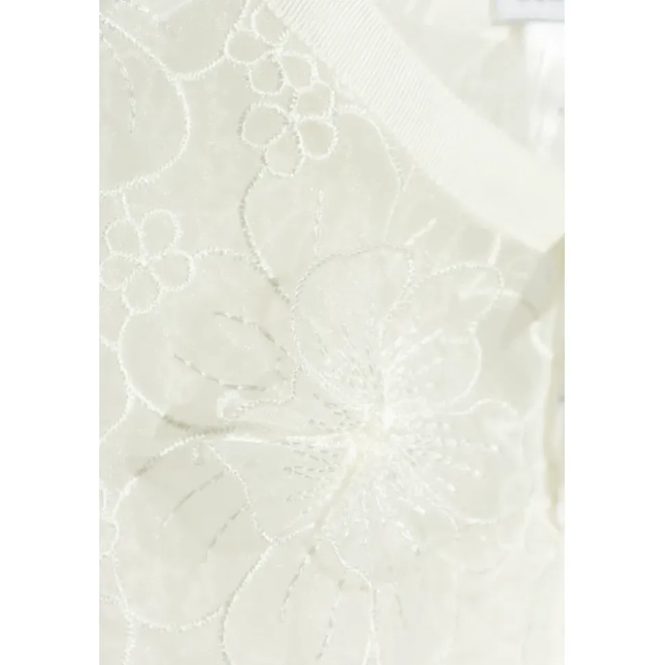 Introductie van de LACE PONCHO voor meisjes van het merk _Self Portrait Kids_, die betovert met zijn subtiele elegantie en verfijnde stijl. Gemaakt van delicate kant, de poncho verrukt met bloemmotieven die subtiel zijn oppervlak versieren. Het klassieke, uitlopende ontwerp valt vrij over de schouders en creëert een verbluffend effect. Kleine strikjes op de schouders voegen charme en meisjesachtige gratie toe. De dominante WITTE KLEUR benadrukt de fijnheid en elegantie van dit unieke garderobe-accessoire. Een praktische voorsluiting maakt het gemakkelijk om aan en uit te trekken, waardoor de poncho een ideale keuze is voor speciale gelegenheden die een uniek karakter vereisen. WAAROM DIT PRODUCT KOPEN? * Elegant en luxueus uiterlijk dankzij kant, bloemmotieven. * Uniek, uitlopend ontwerp dat charme toevoegt. * Praktische voorsluiting voor gemakkelijk gebruik. * Subtiele toevoegingen in de vorm van strikjes op de schouders. * Perfect voor speciale gelegenheden, waarbij het unieke karakter van de kindergarderobe wordt benadrukt.
