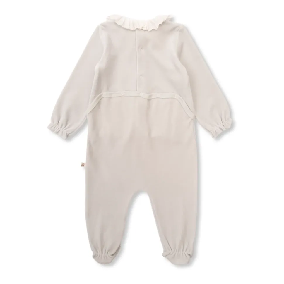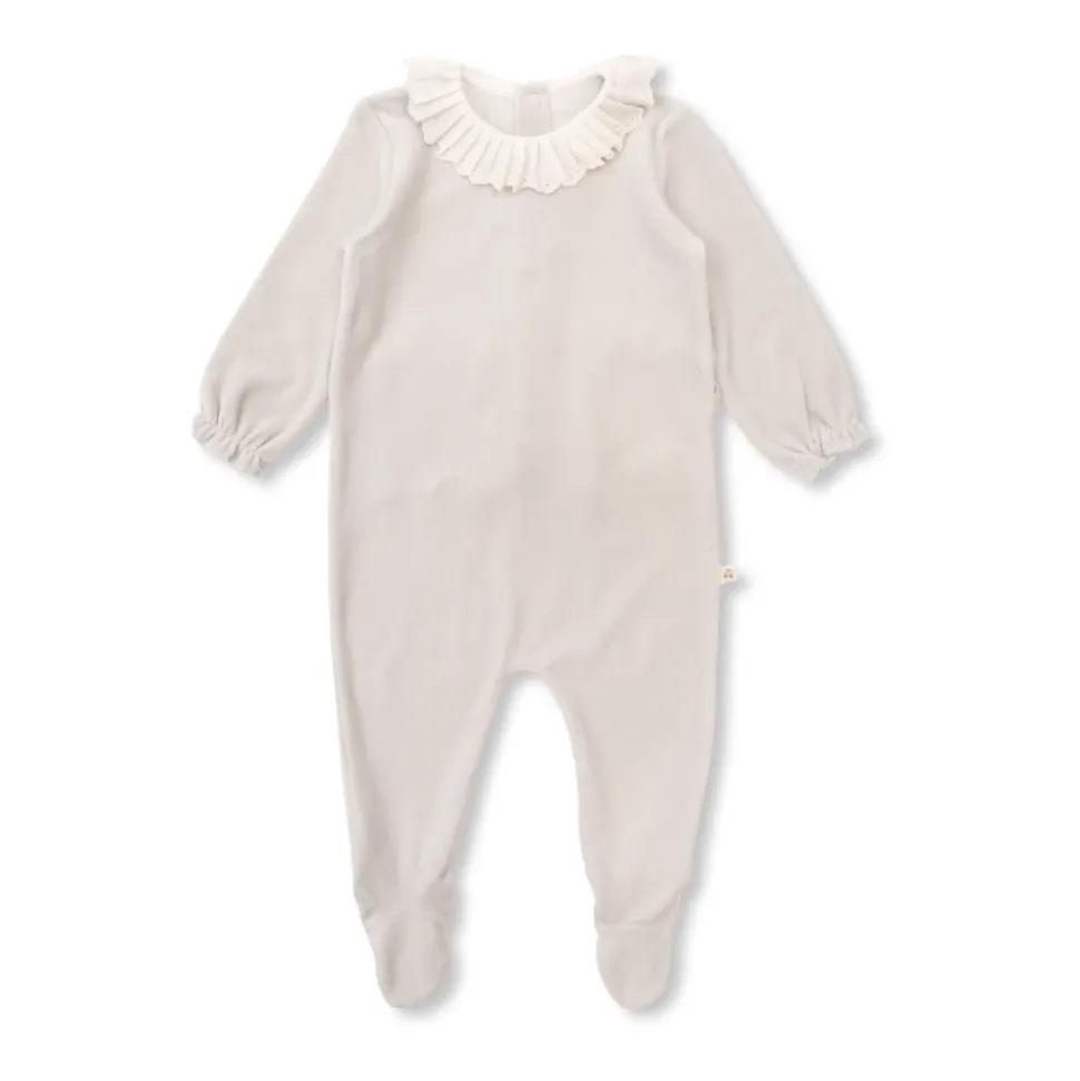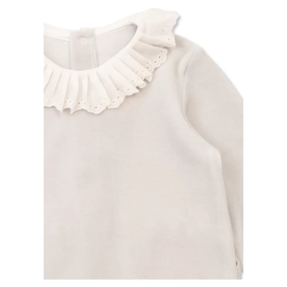 Lichtgrijze romper van Bonpoint. Gemaakt van katoen, dit model sluit met drukknopen op de achterkant en heeft een witte kraag met opengewerkte details en lange mouwen met elastische manchetten.